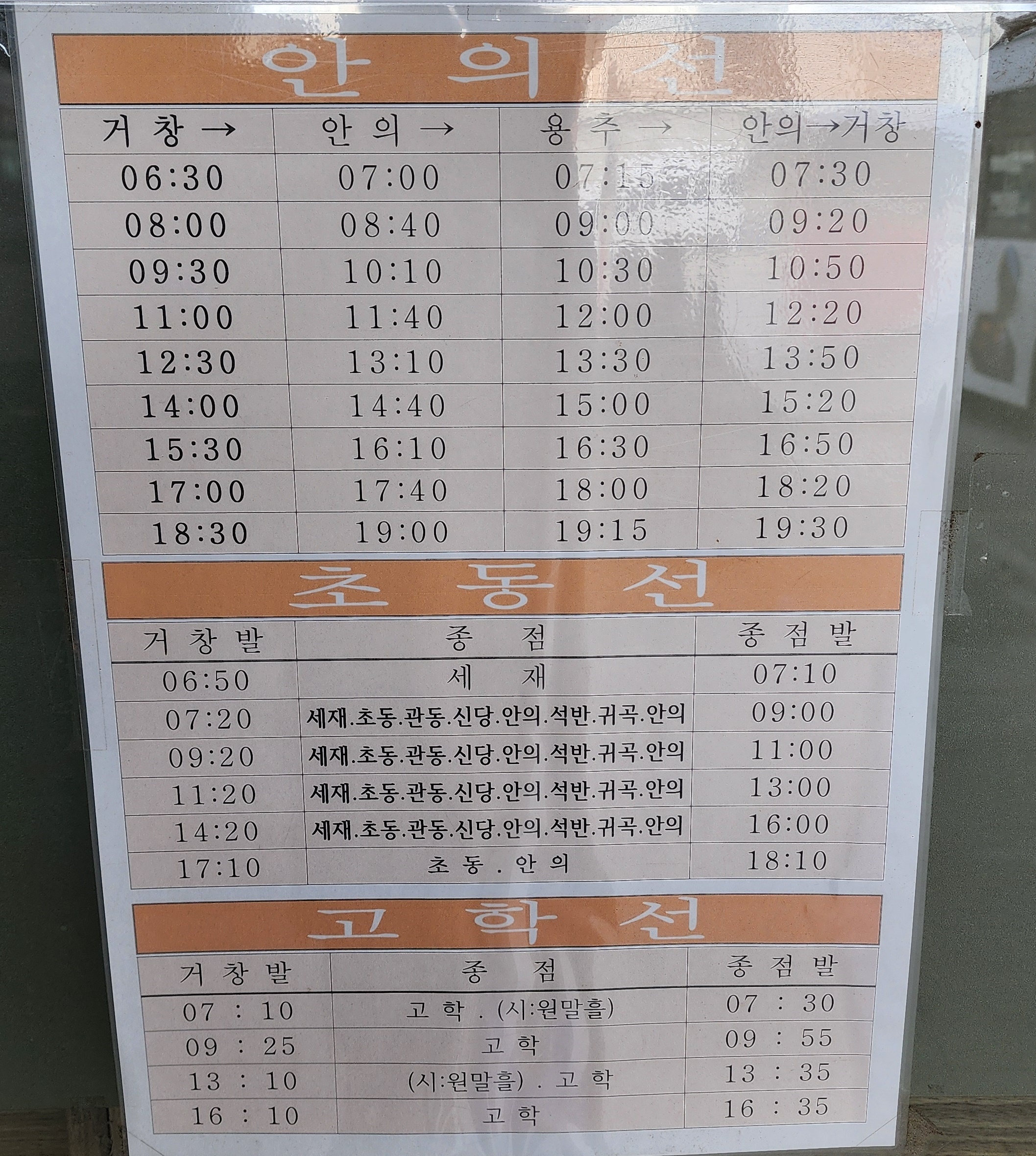 거창 출발 안의선, 초동선, 고학선, 안의, 용추 방면.