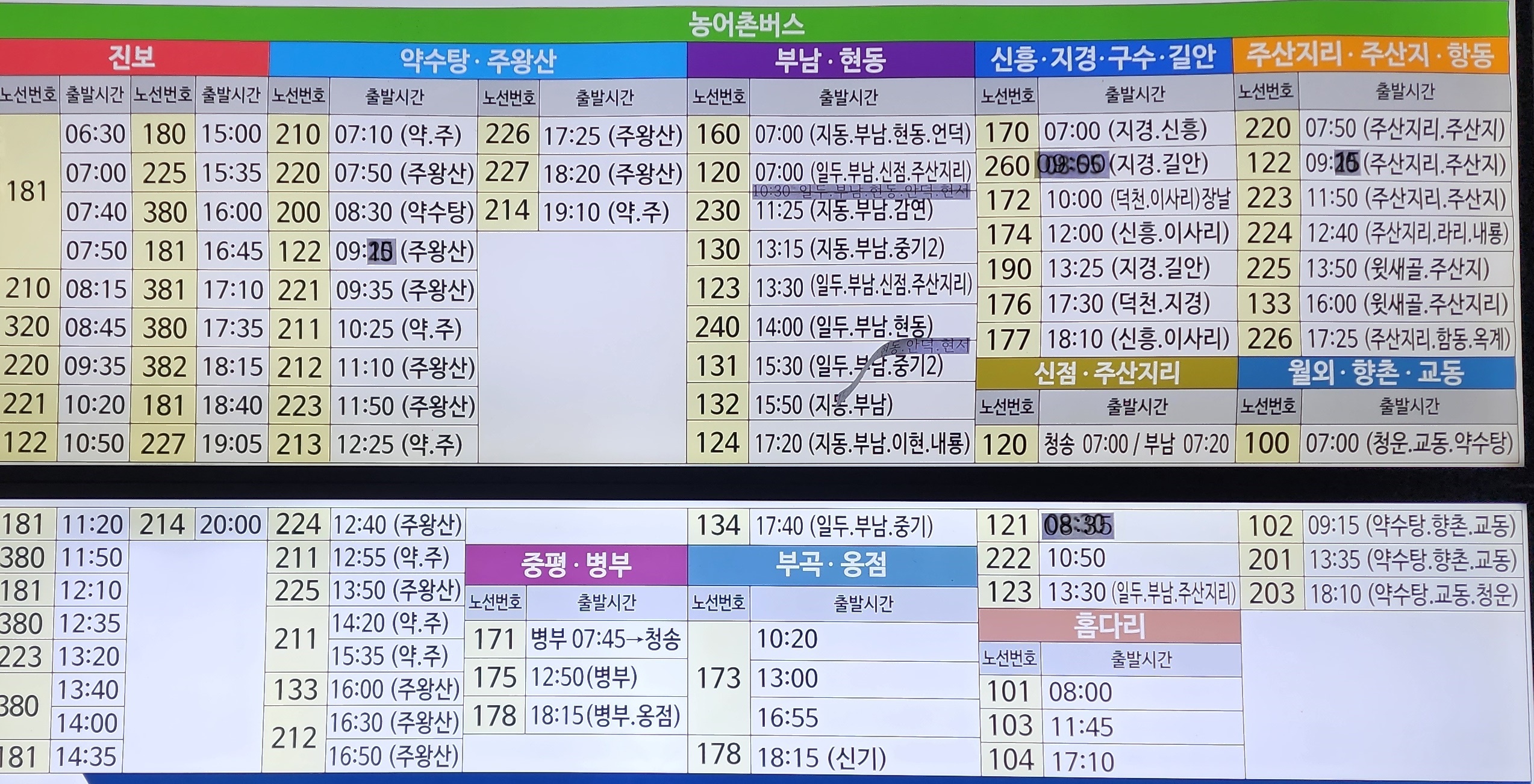 청송 츨발 농어촌버스 시간표