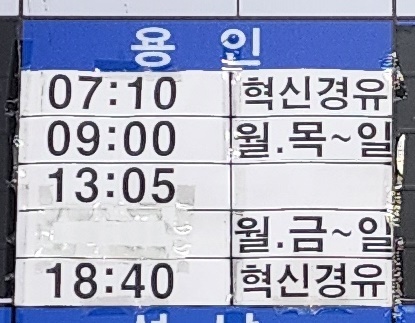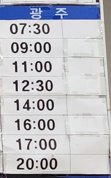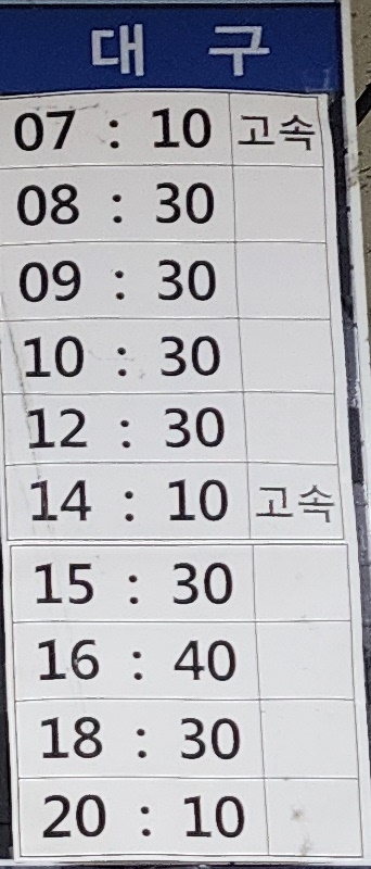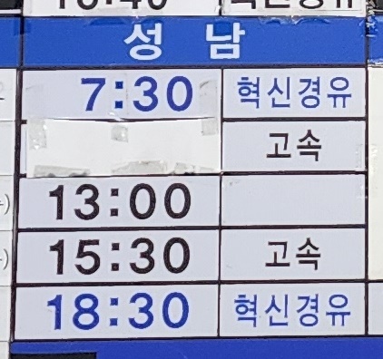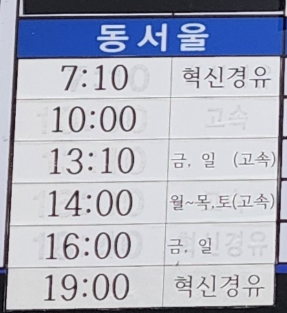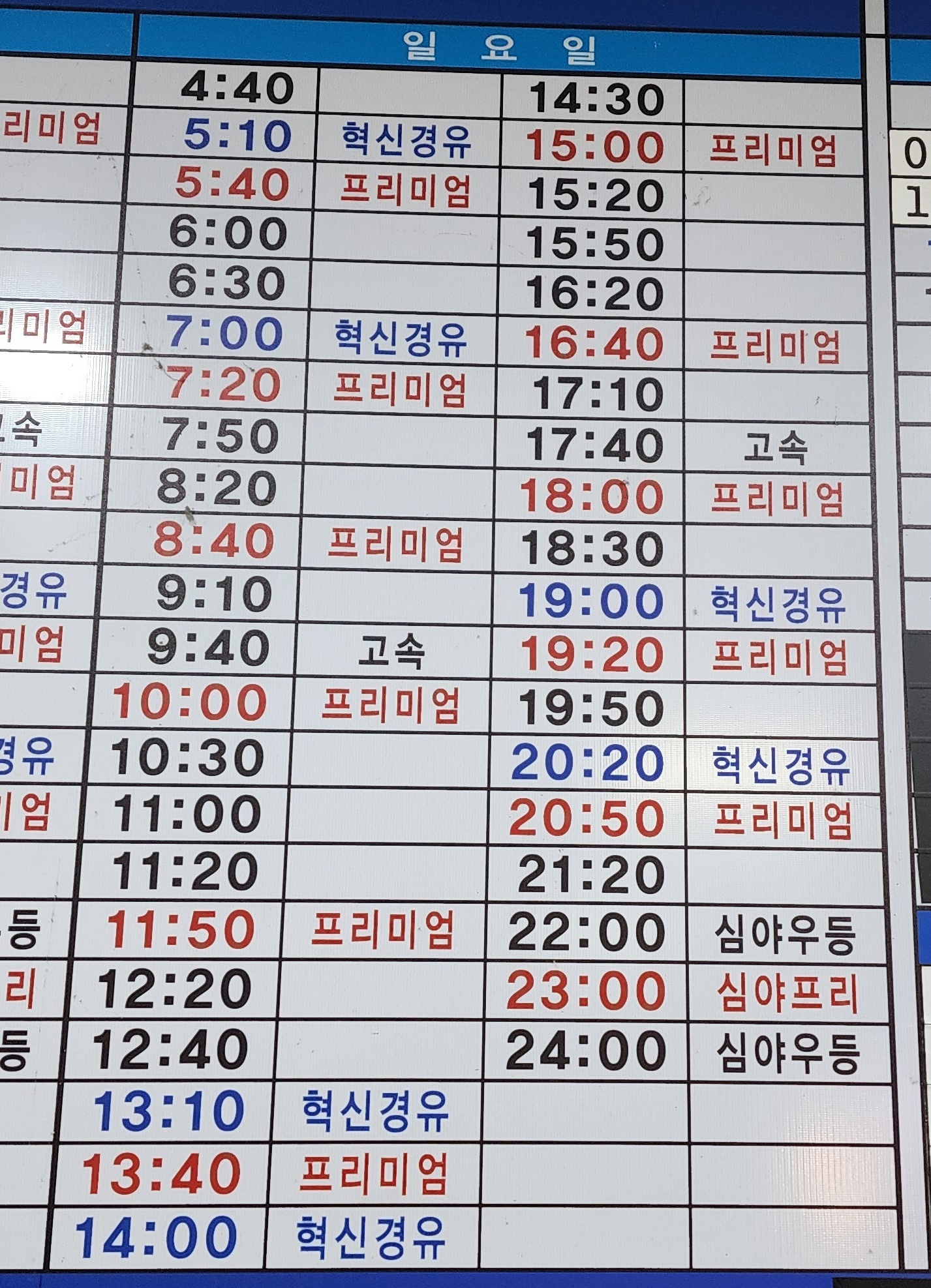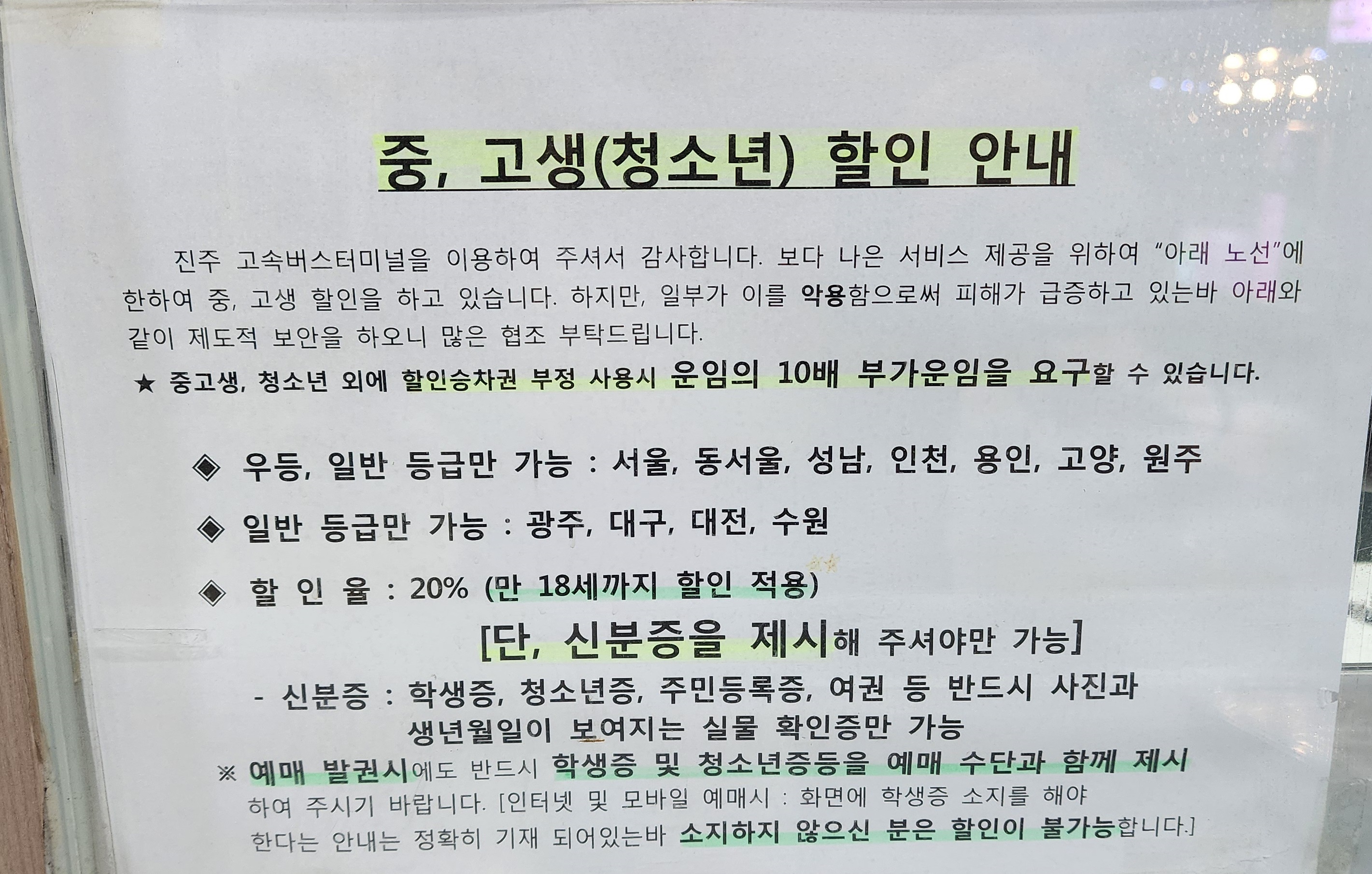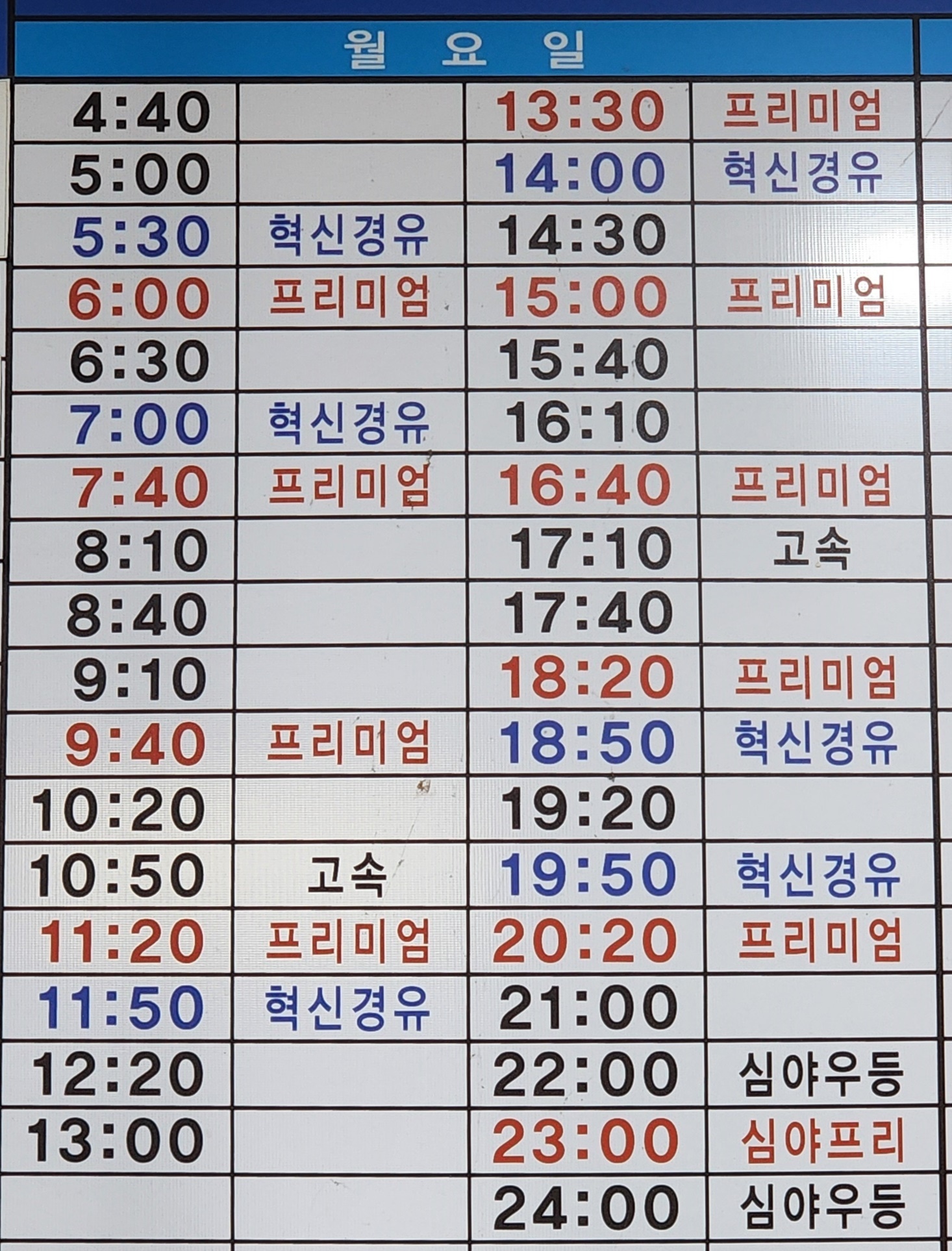 진주 출발 서울, 동서울,수원, 인천, 성남, 용인, 용인시갈, 용인기흥, 광주, 대구 요금표.