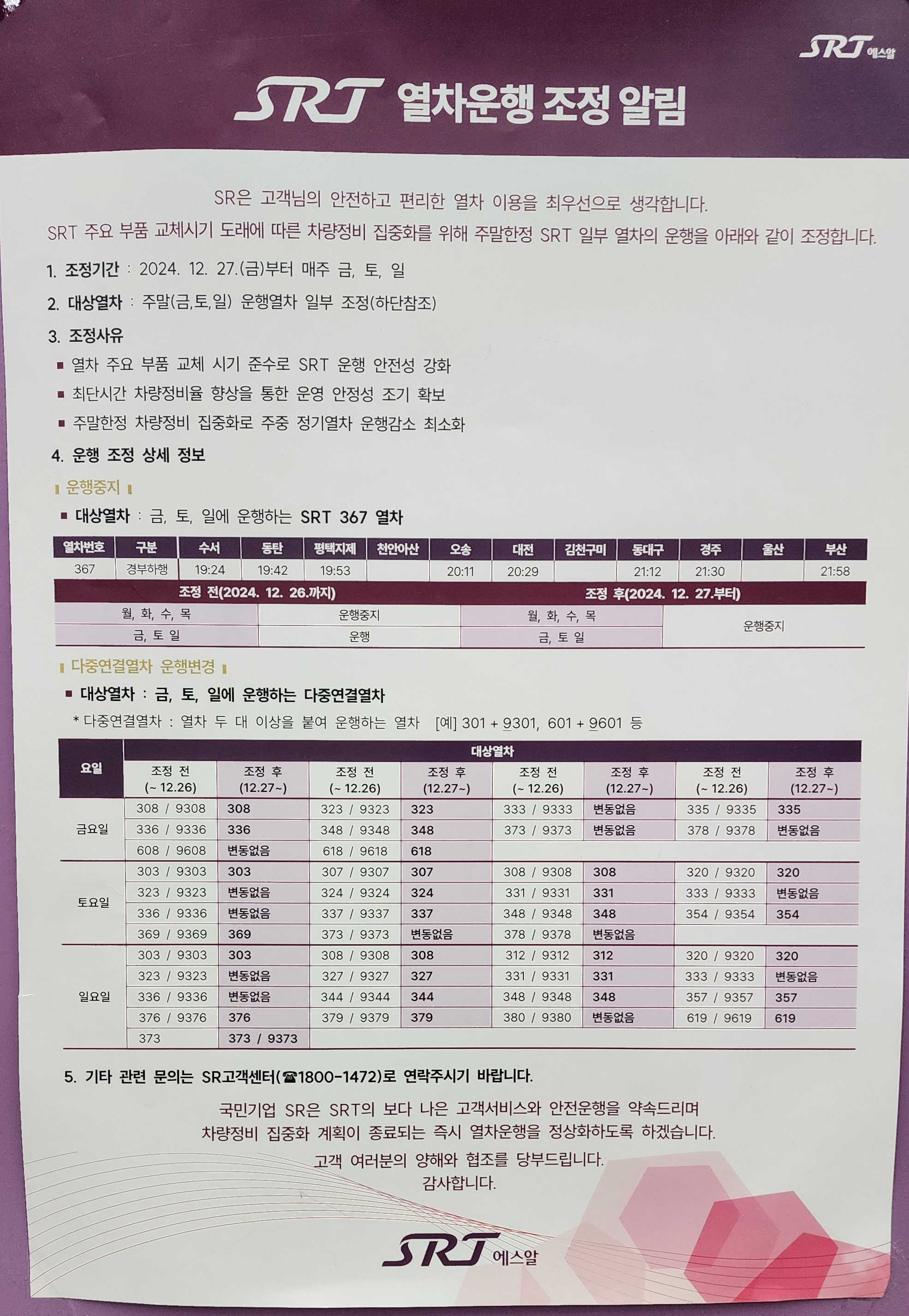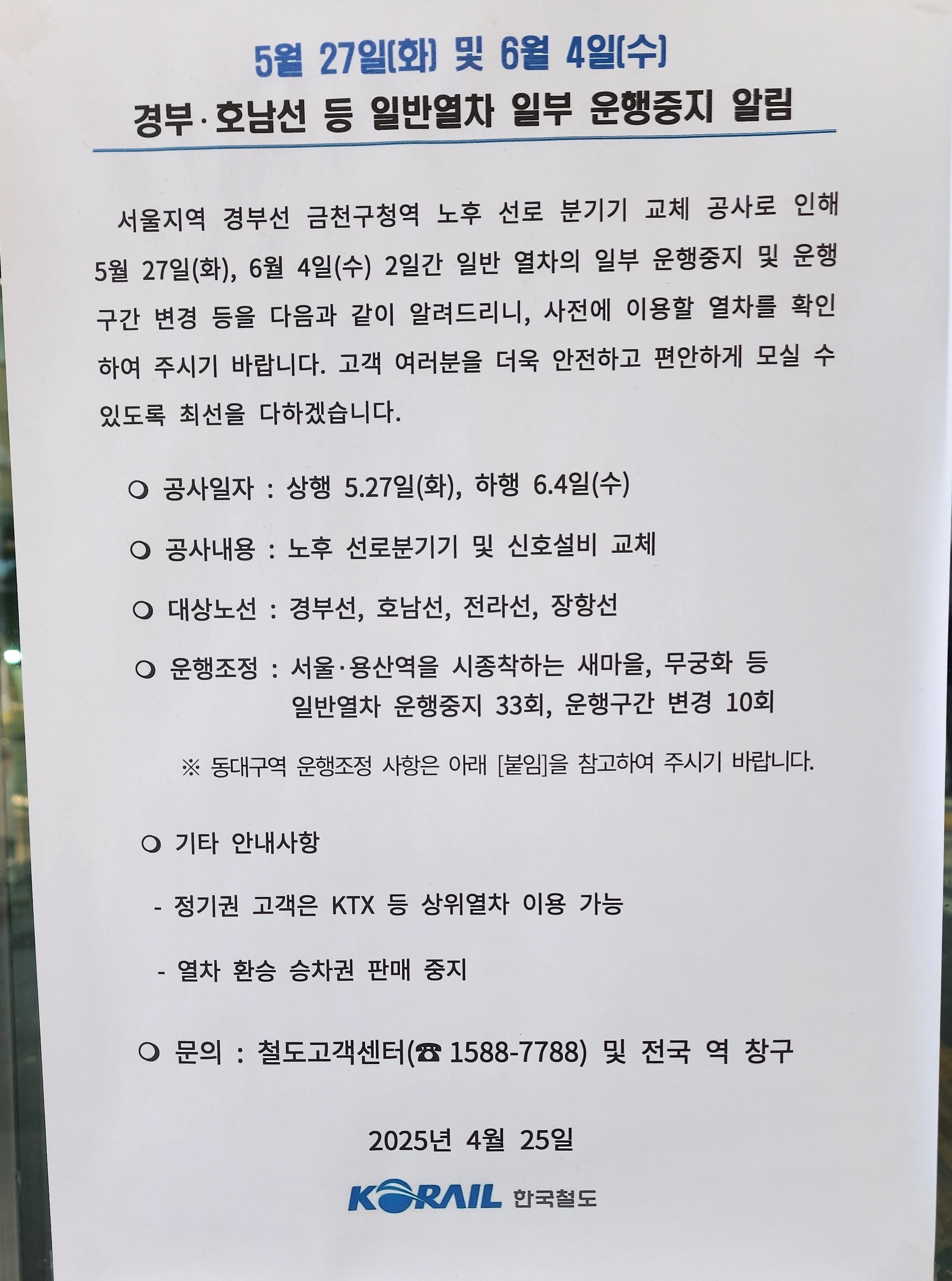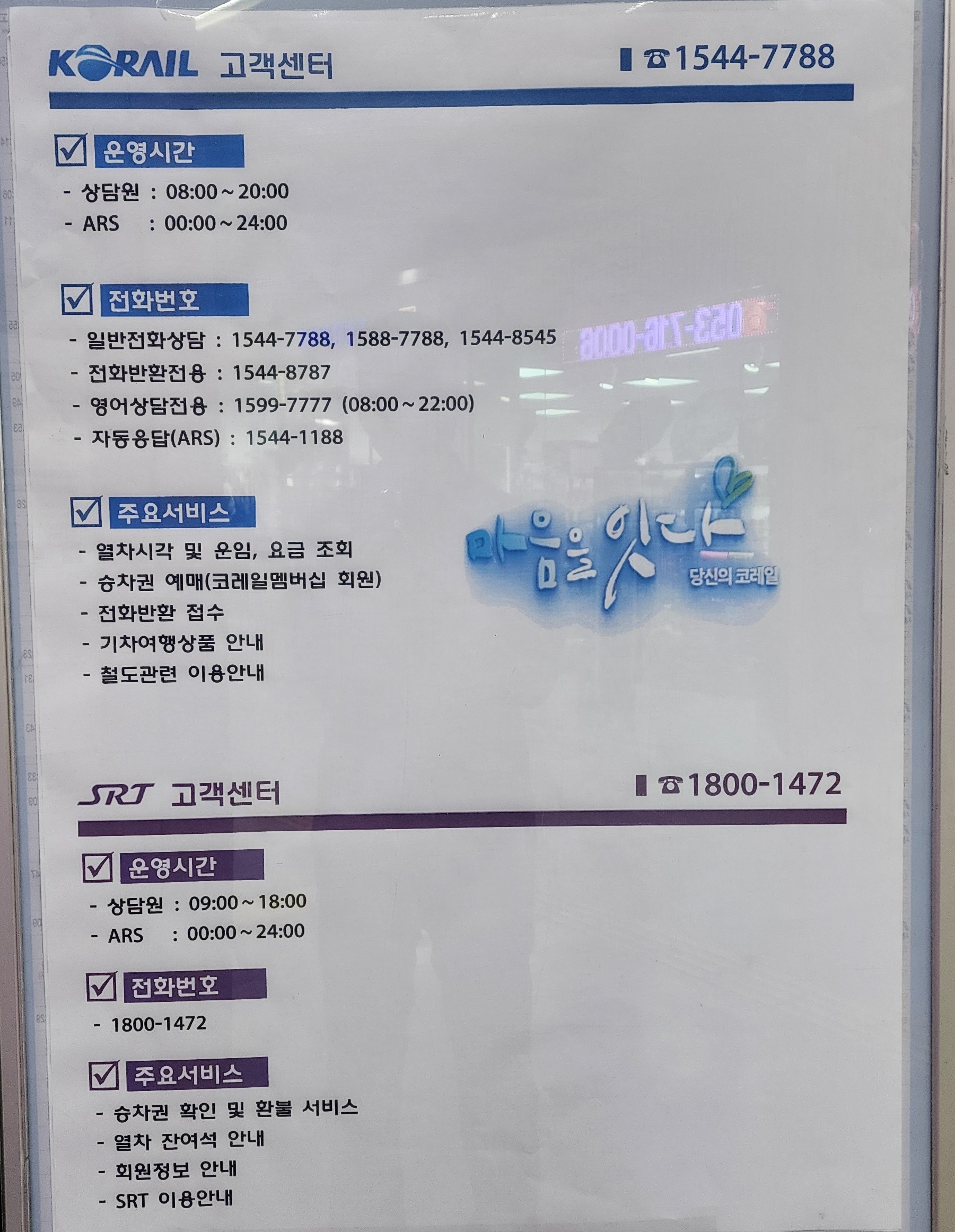 전화번호 : 1544-7788 KTX,SRT정차역