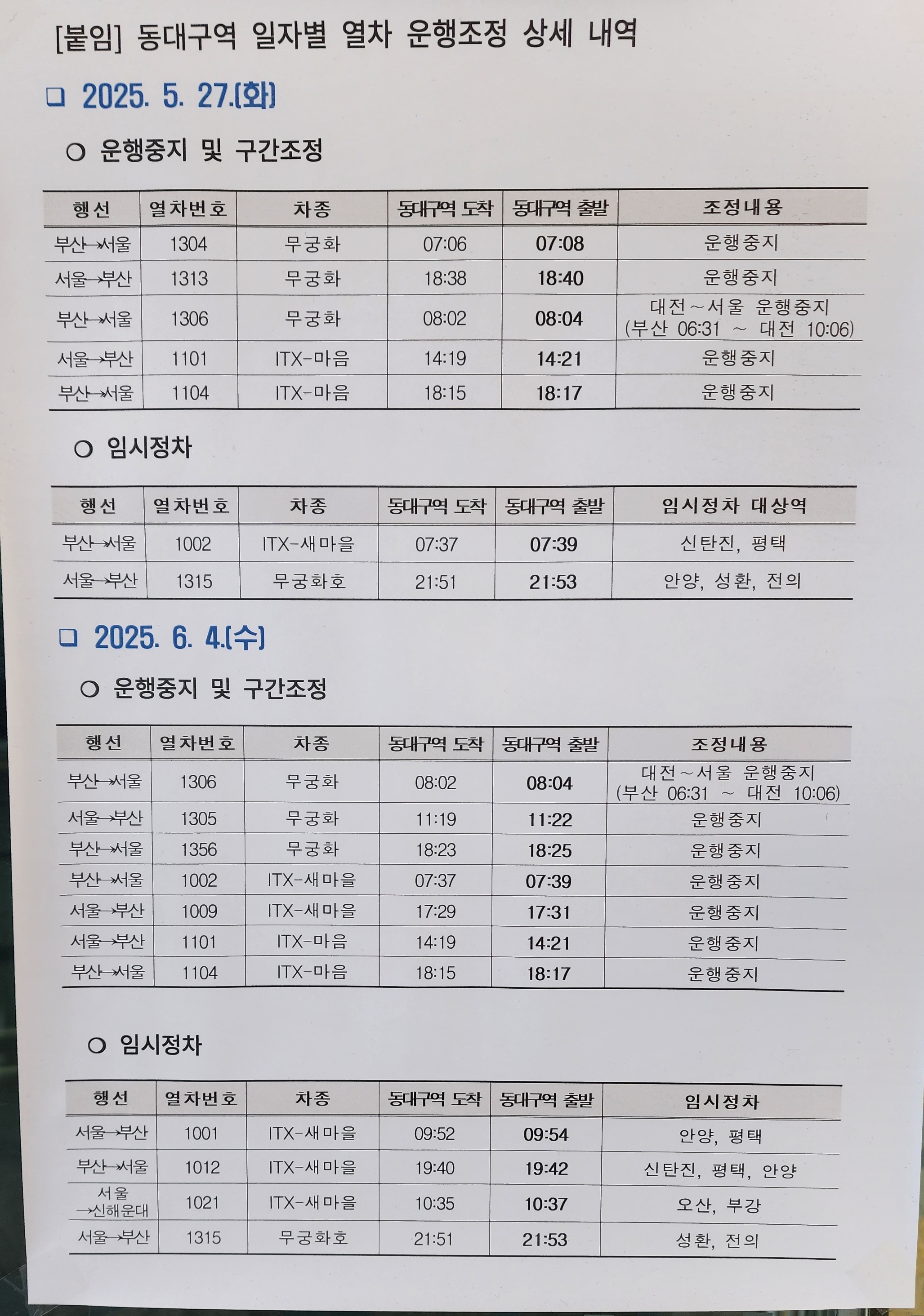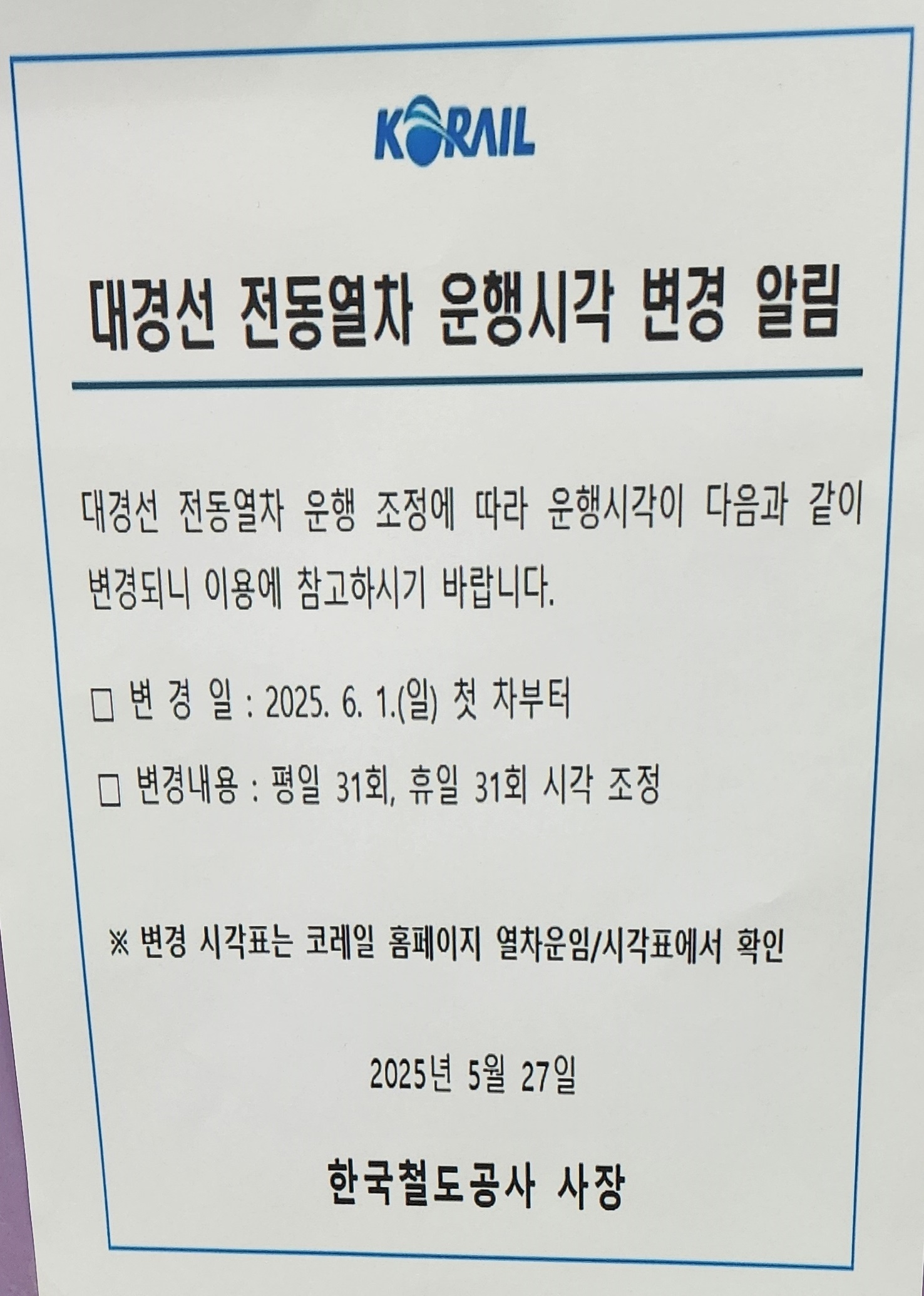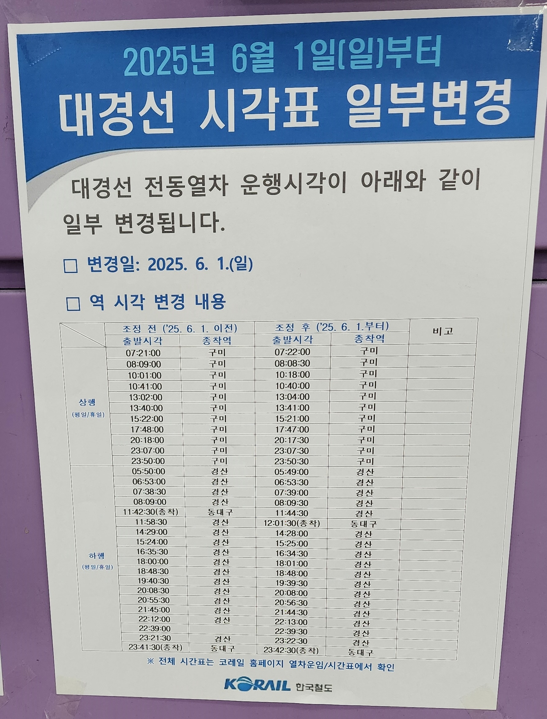 2025년 6월 1일부터 대경선 시각표 일부 변경