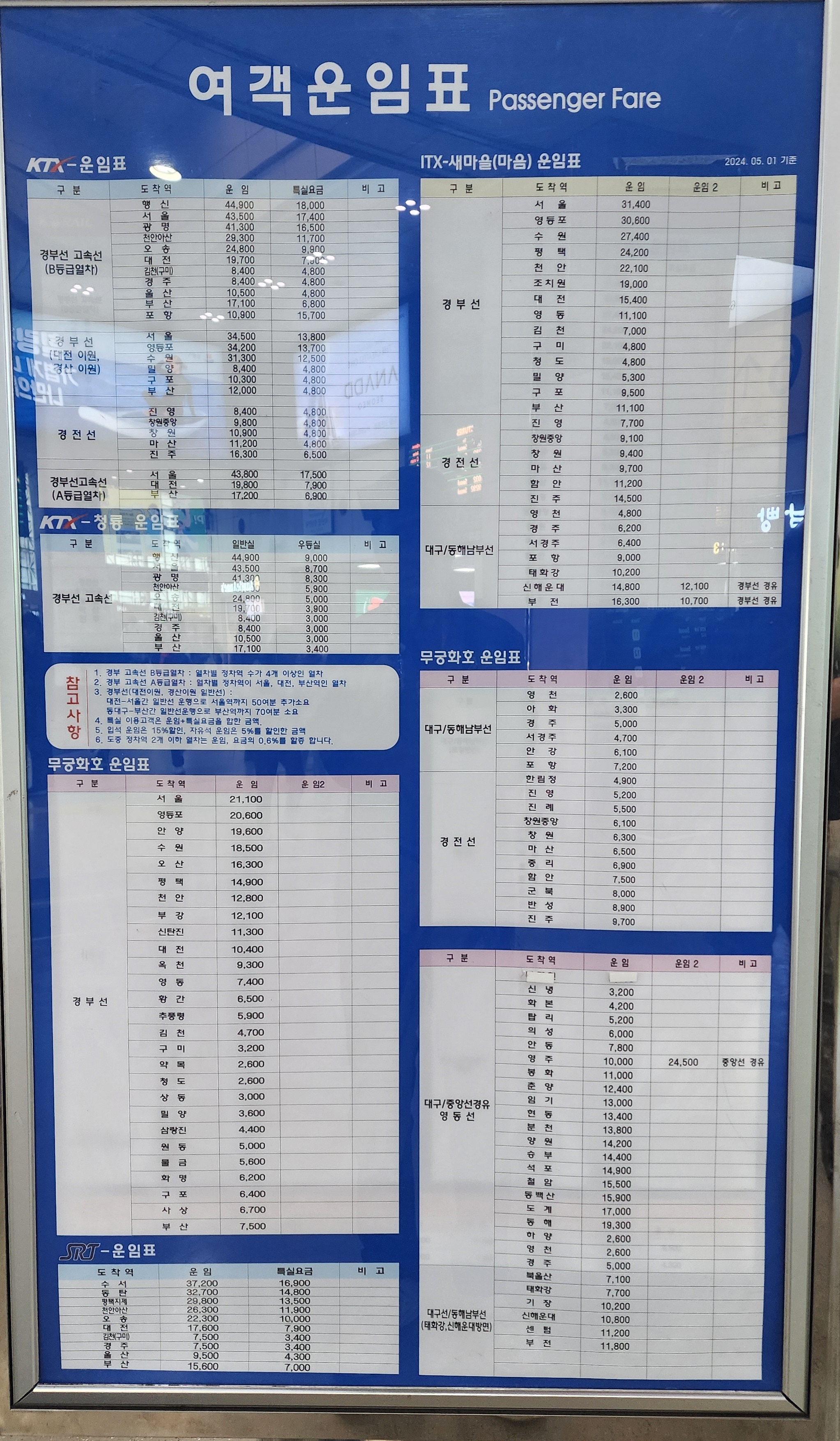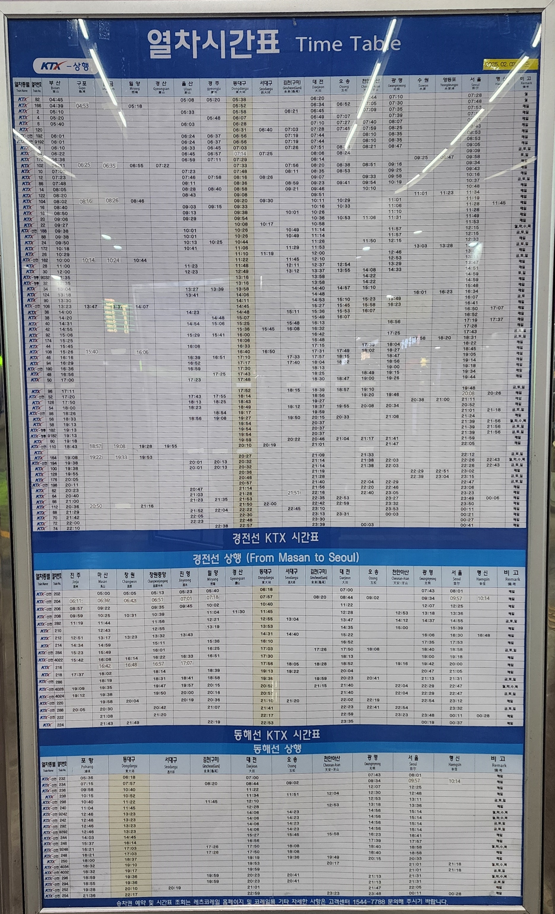 KTX 상행 시간표