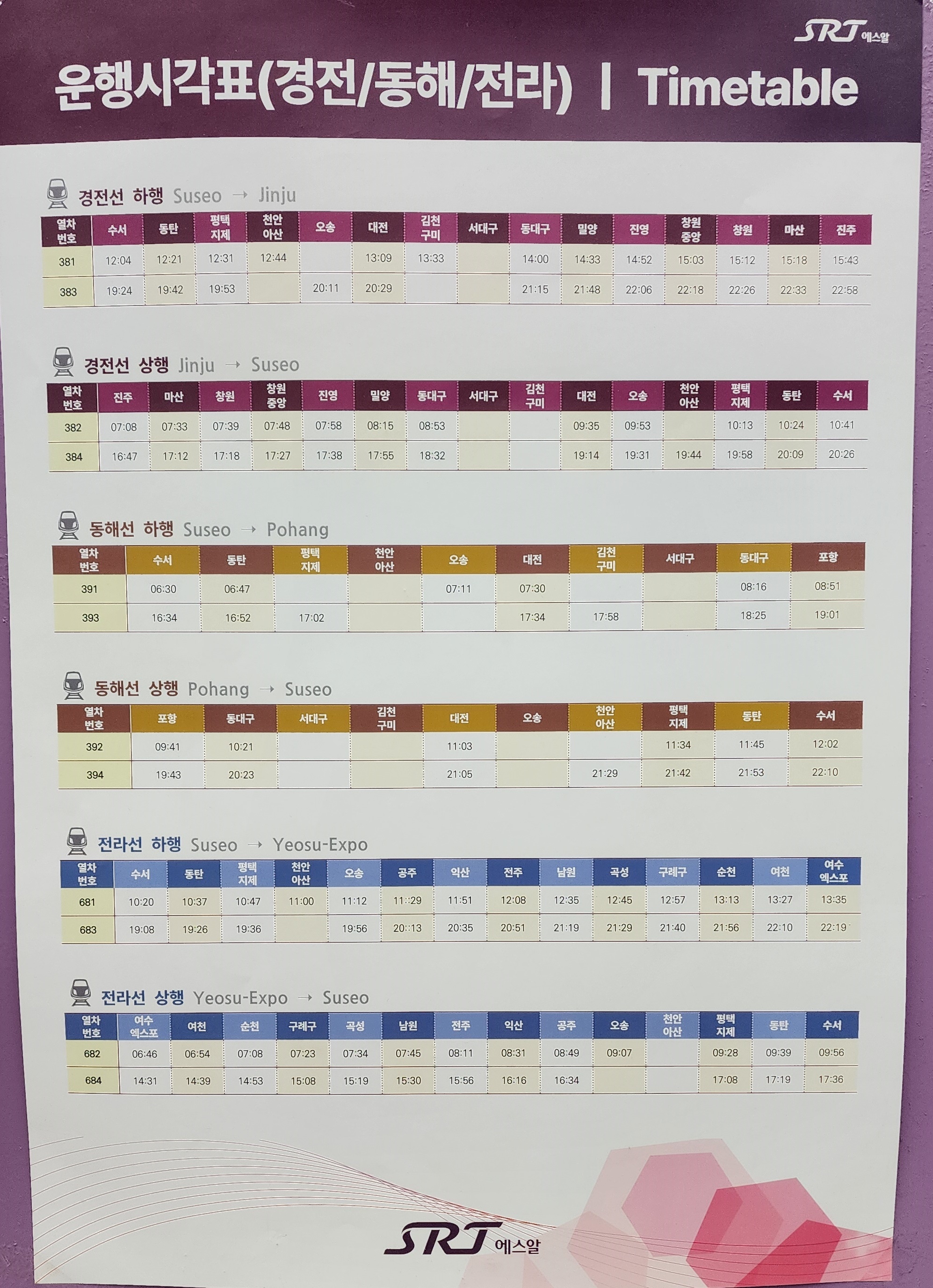 KTX 하행 시간표