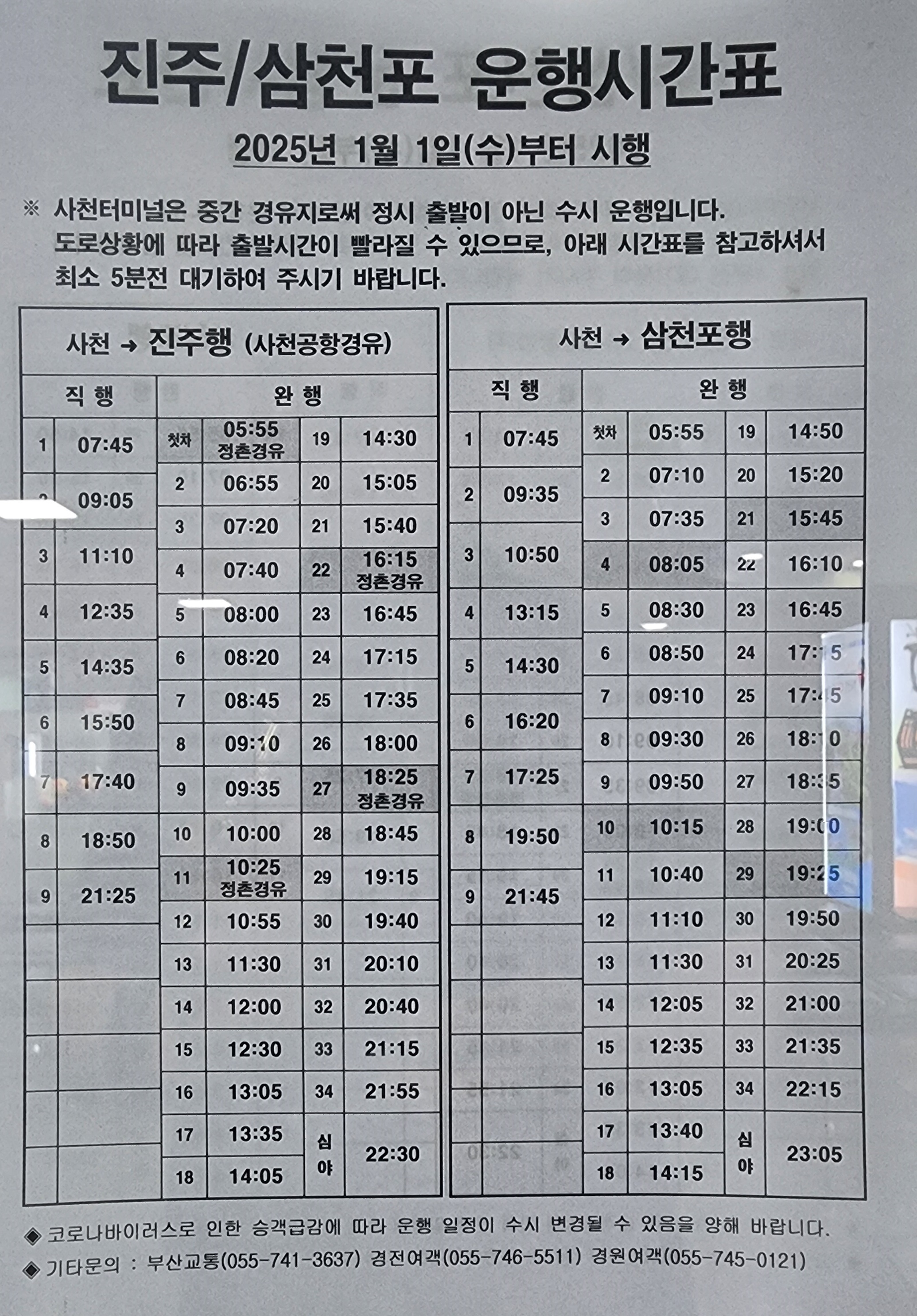 사천 출발 진주, 삼천포, 곤양, 중항 방면.
