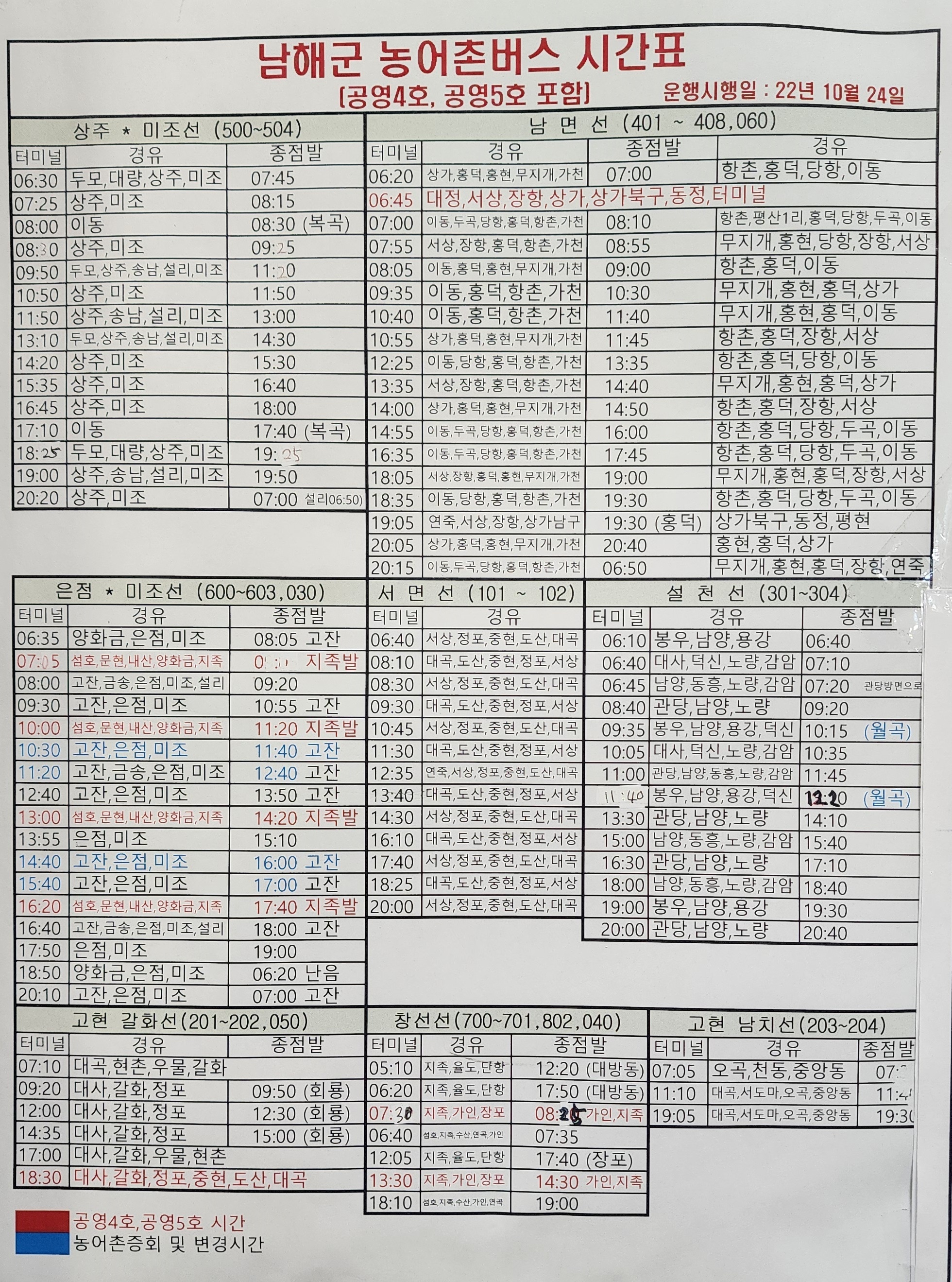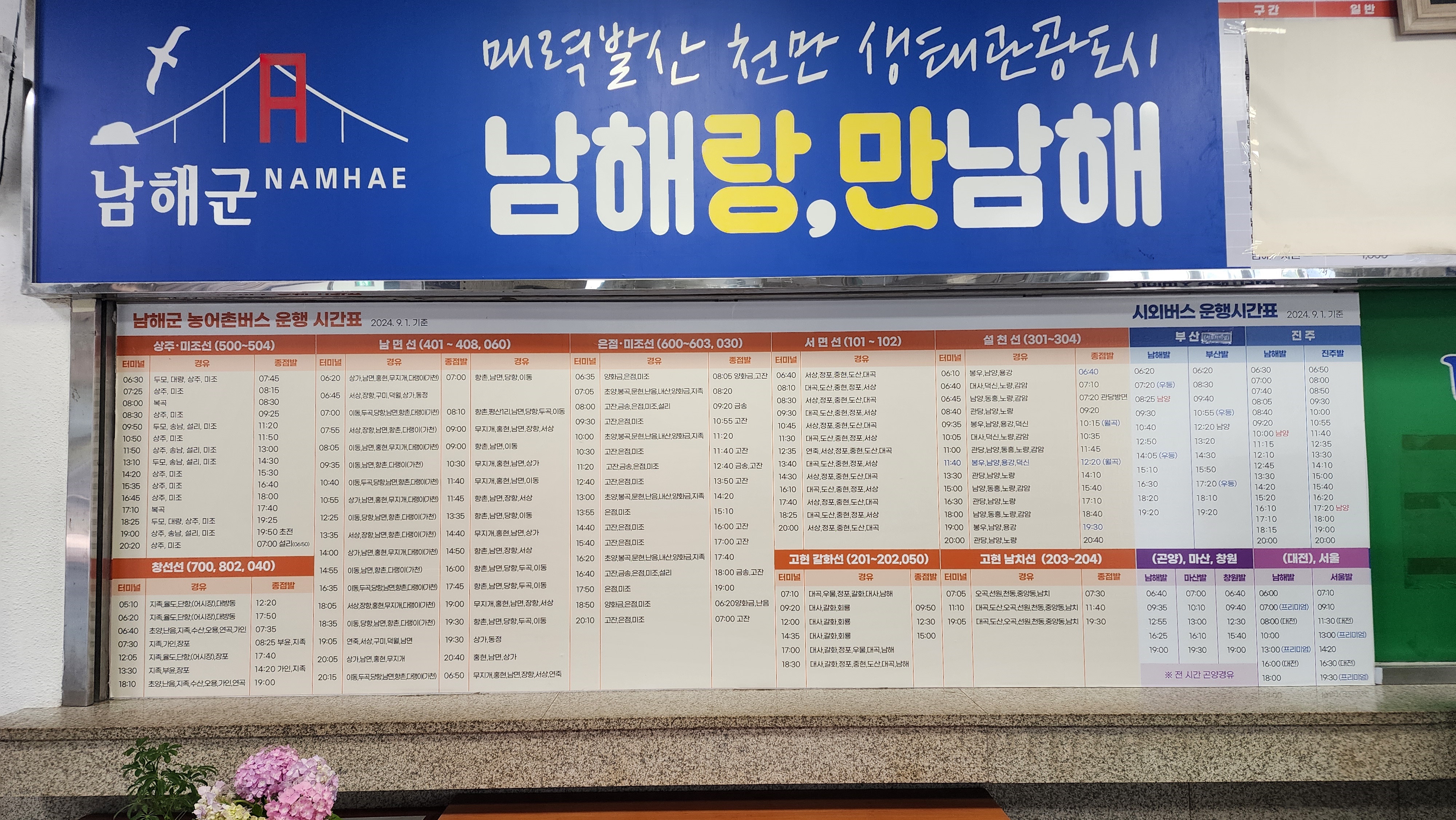 남해 출발 부산 서부, 진주, 곤양, 마산, 창원, 대전, 서울 방면.