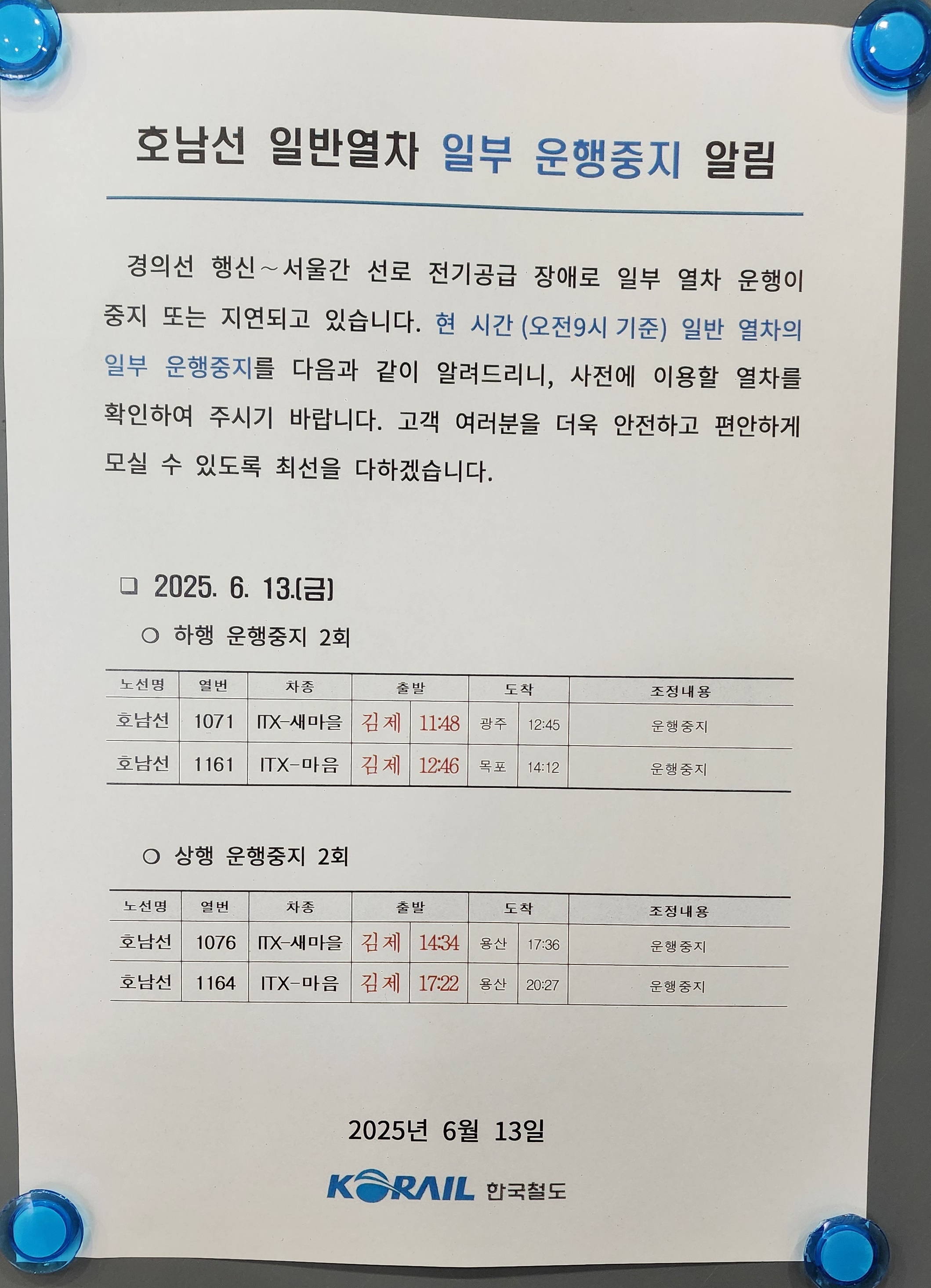 목포 출발 김제 경유 익산, 서대전, 천안, 수원, 용산 방면.