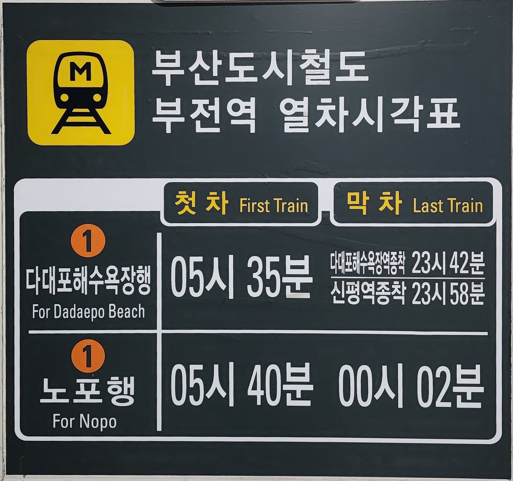 부산 도시철도 부전역 열차시각표