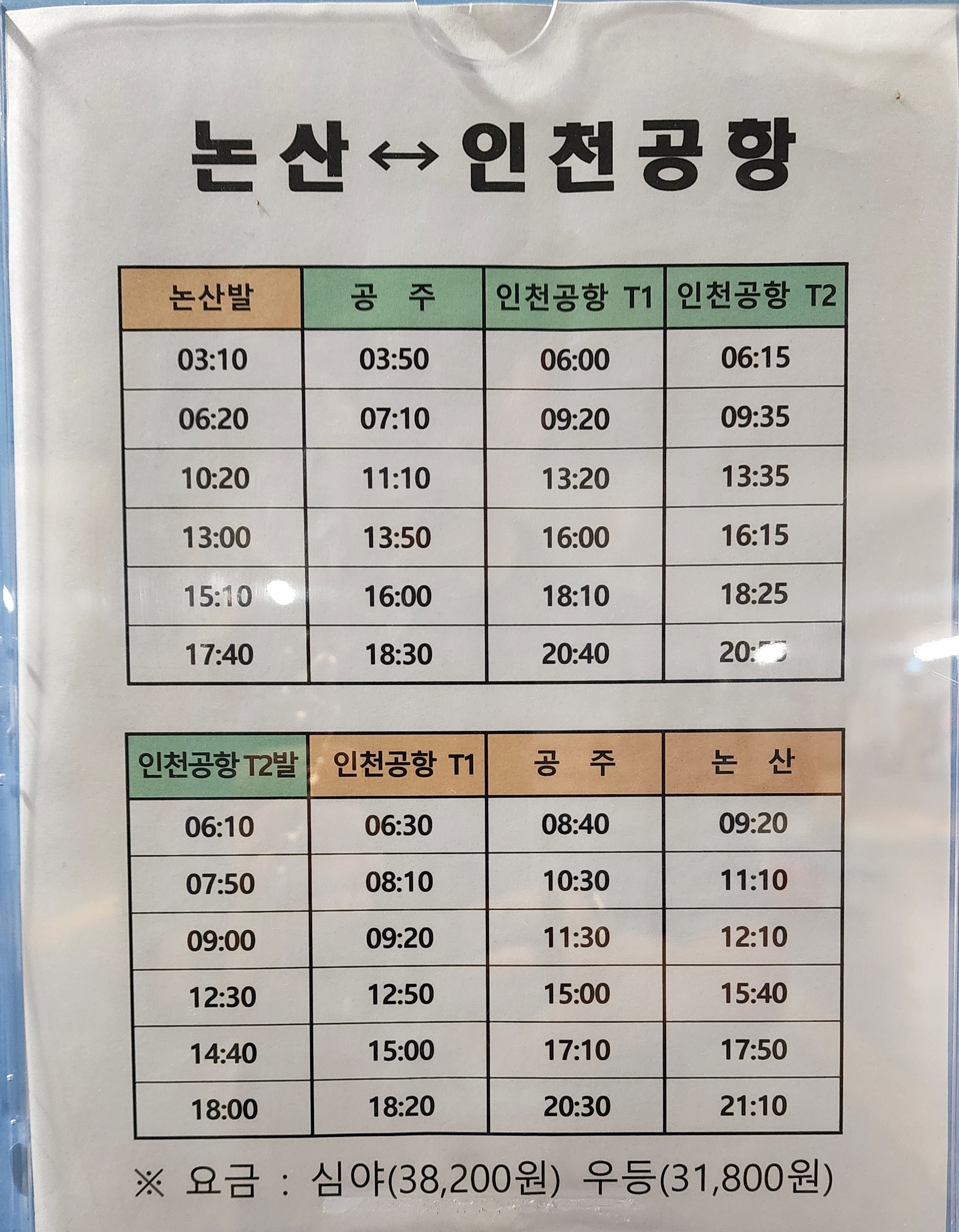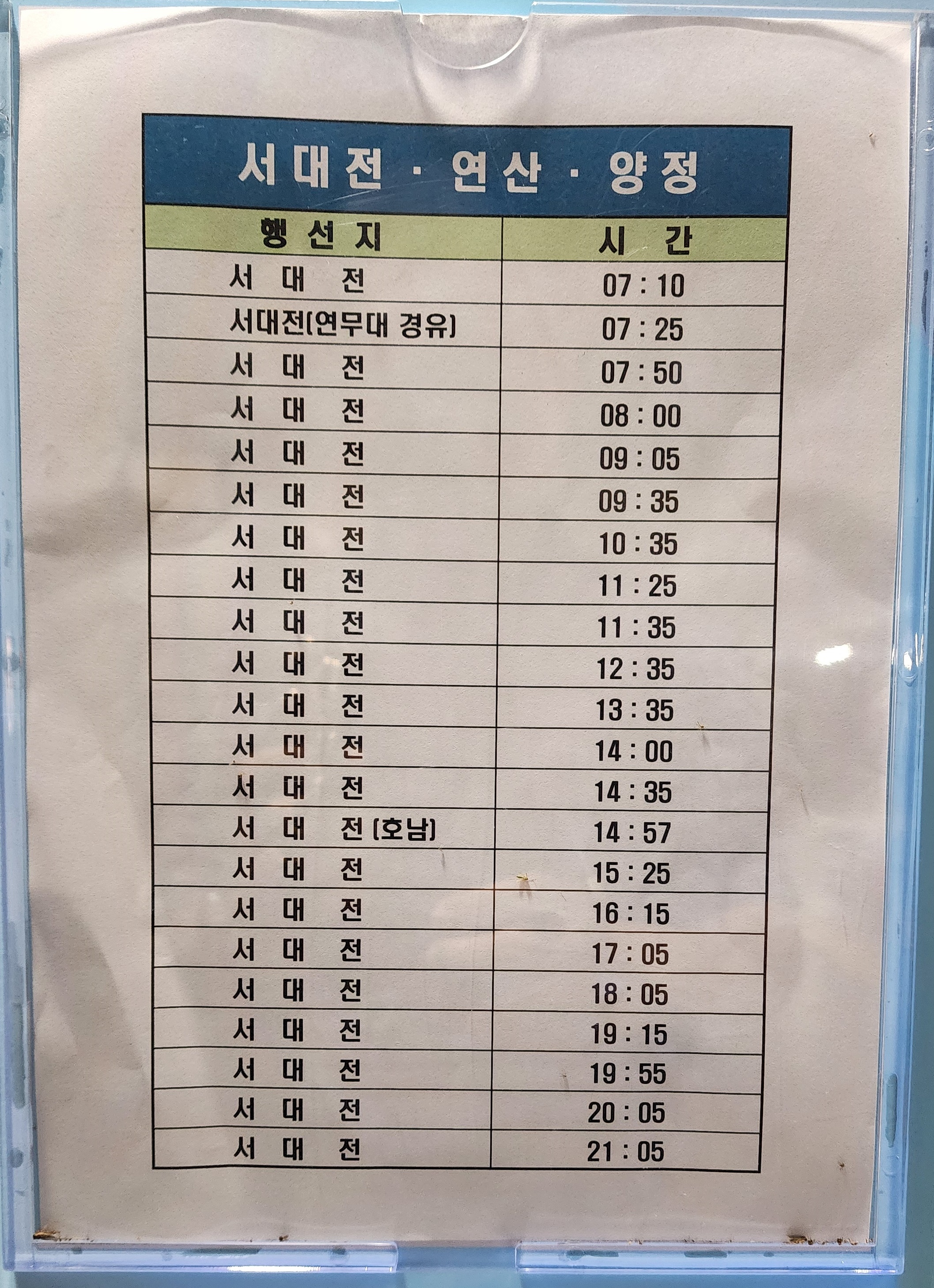 논산 출발 서울, 천안, 공주, 성남 방면.