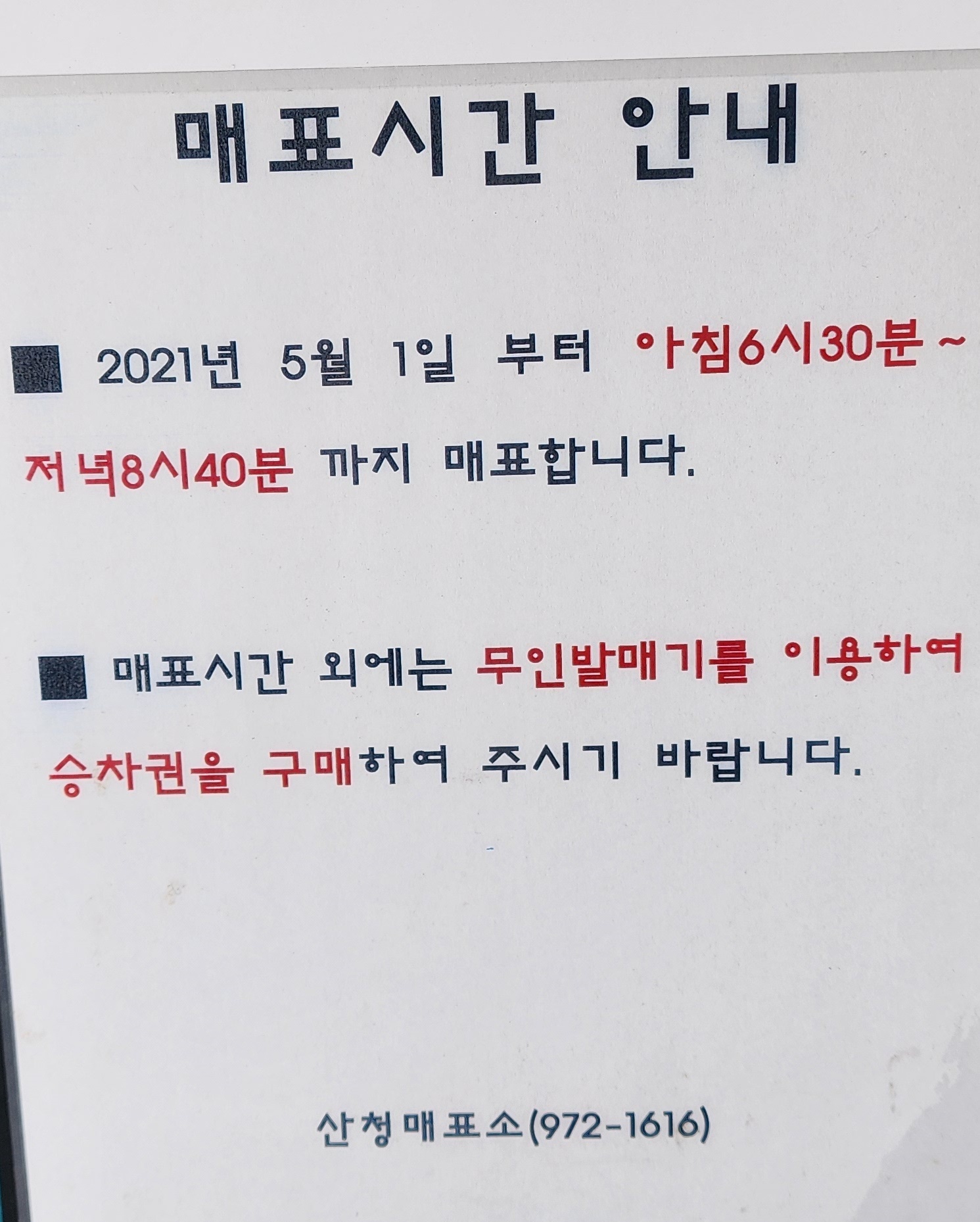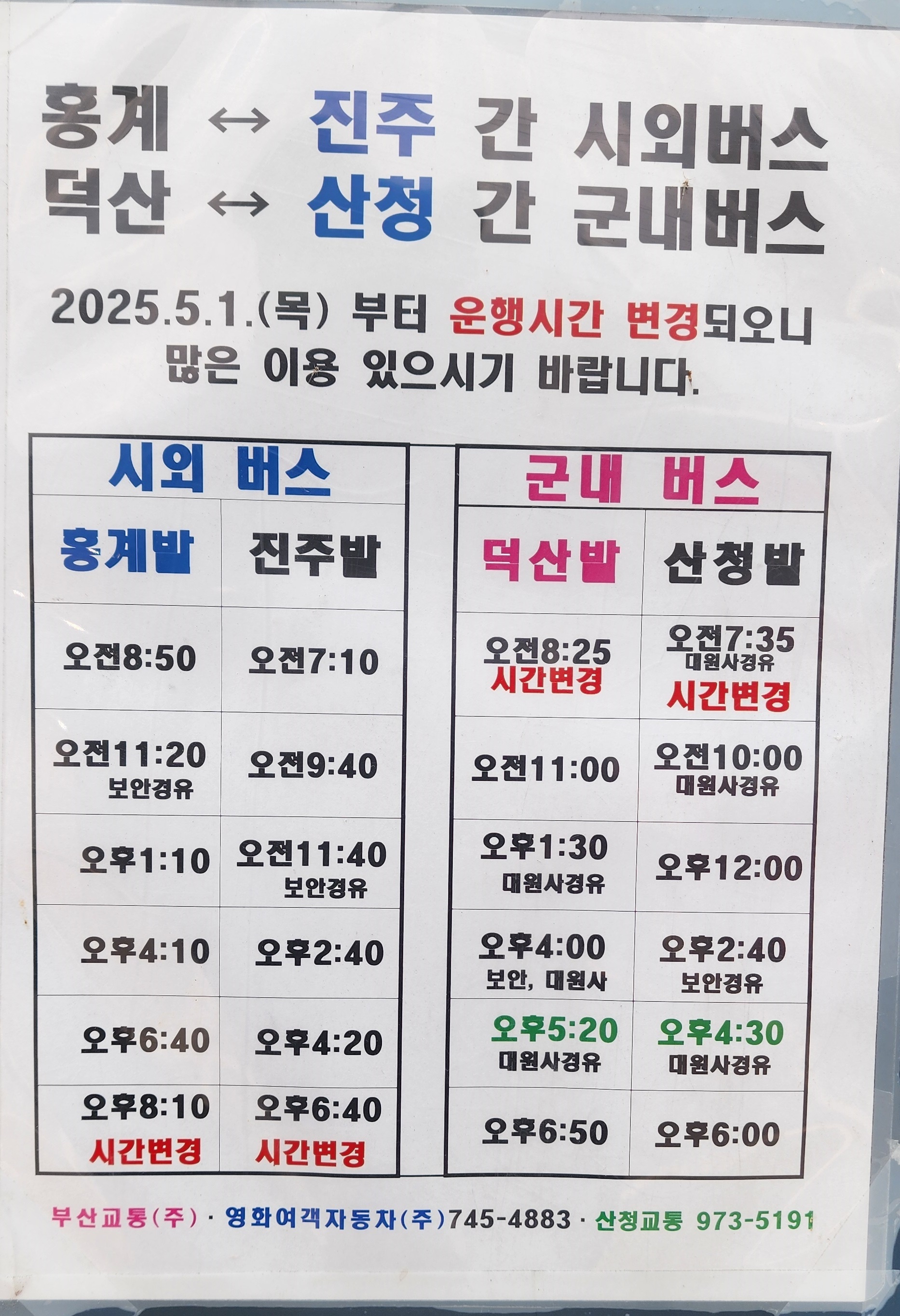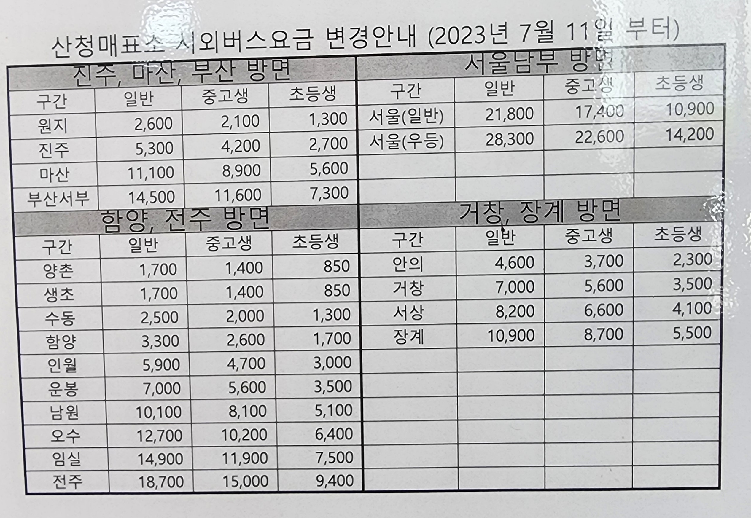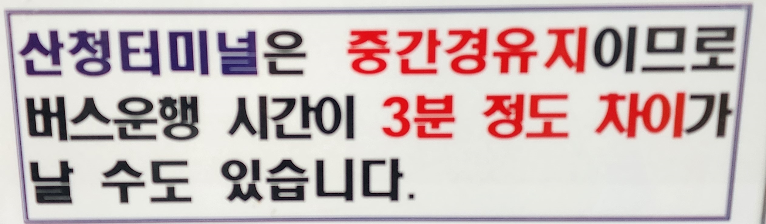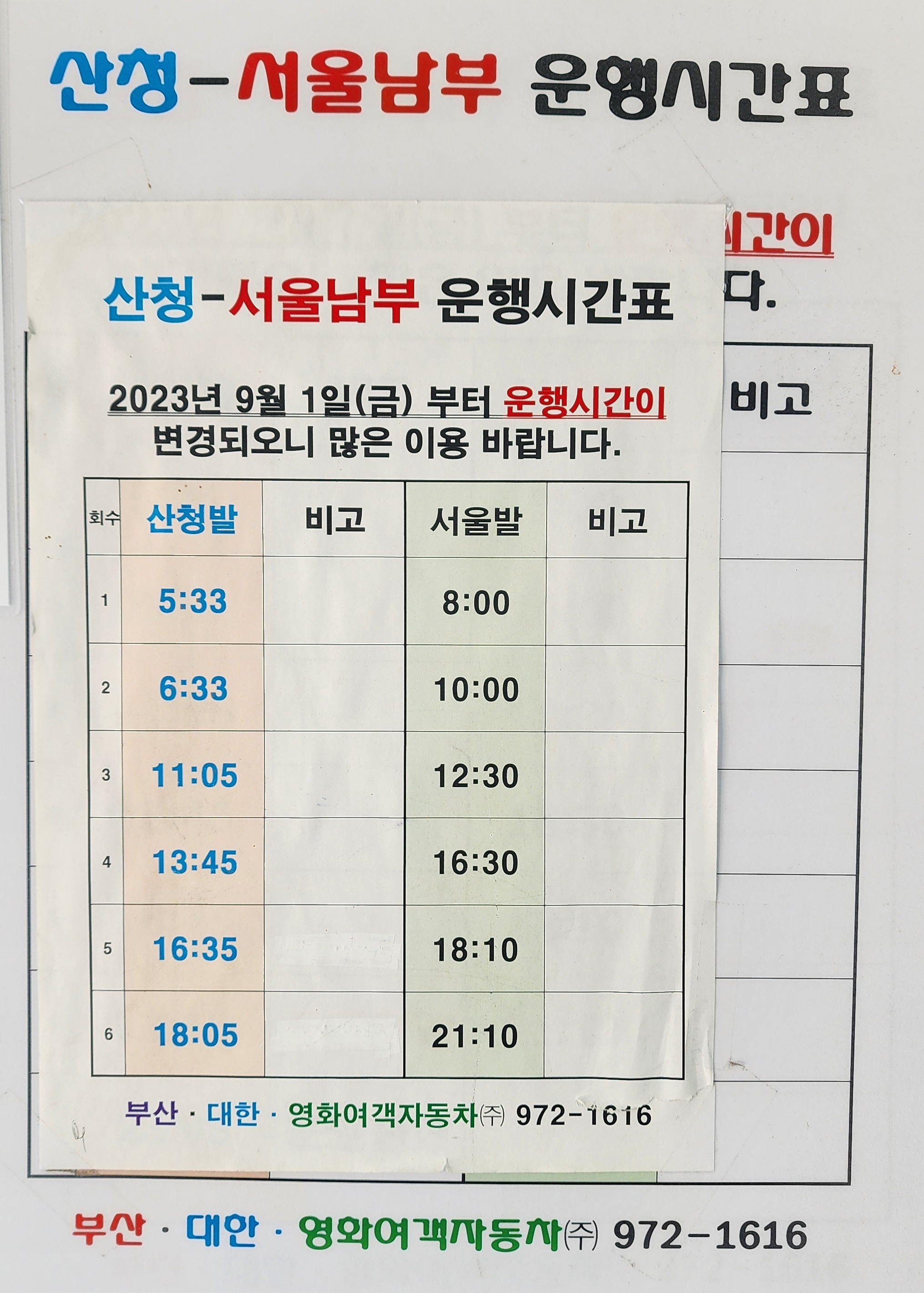 산청시외버스터미널 시간표 요금표 주차장 안내