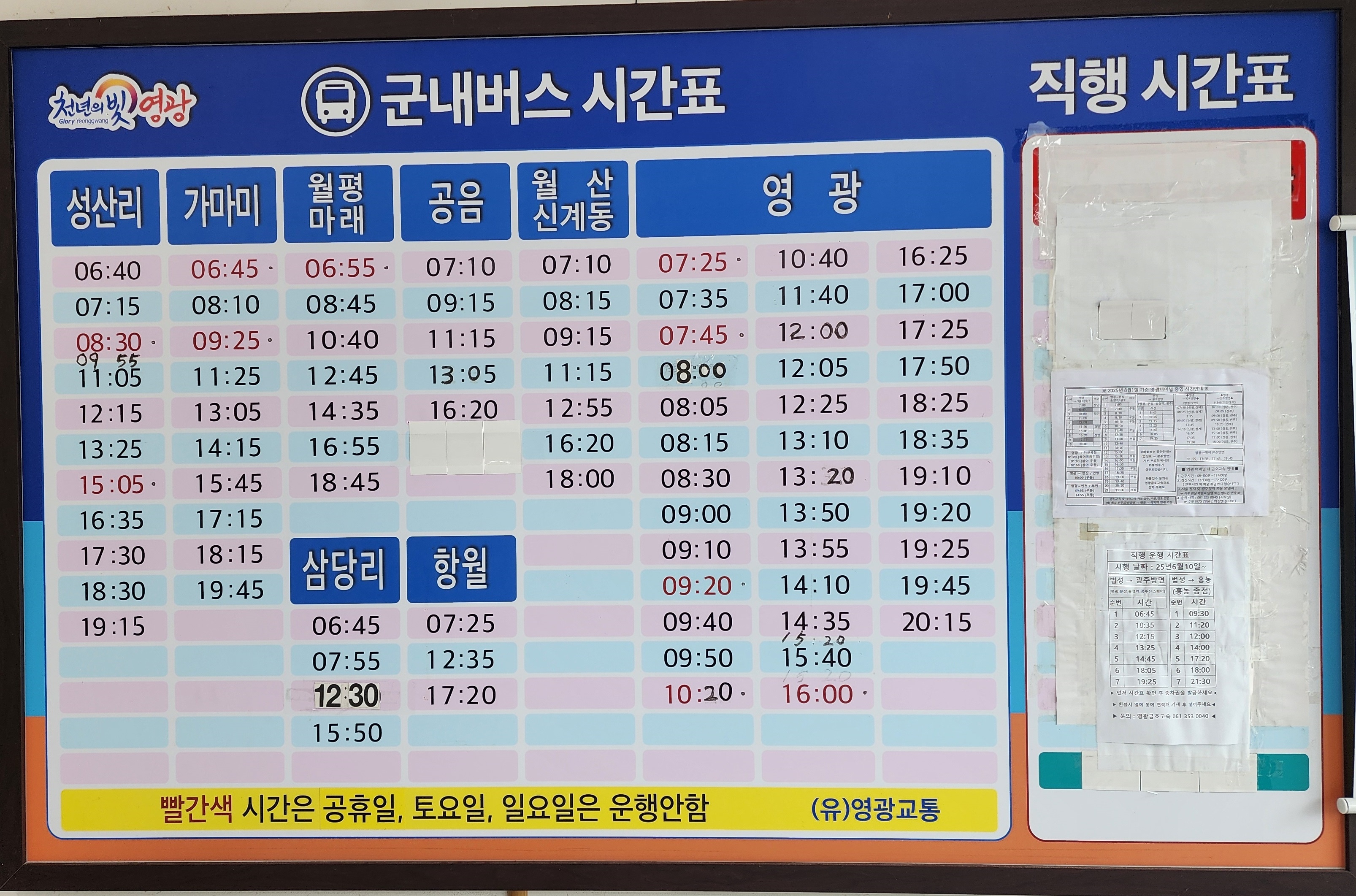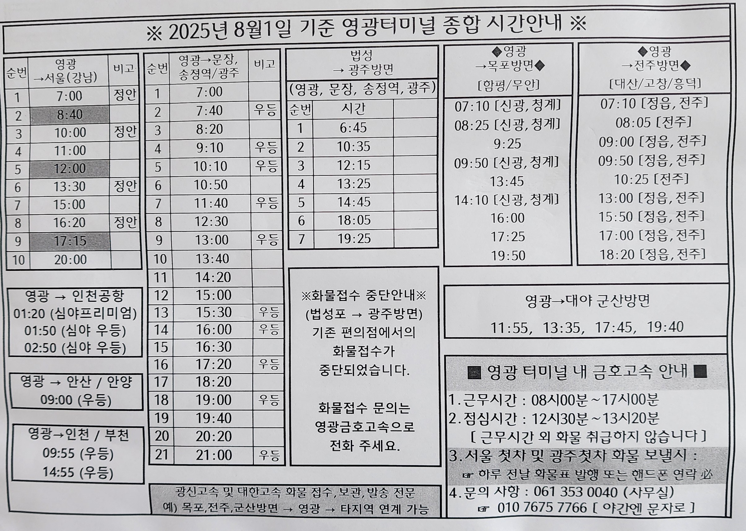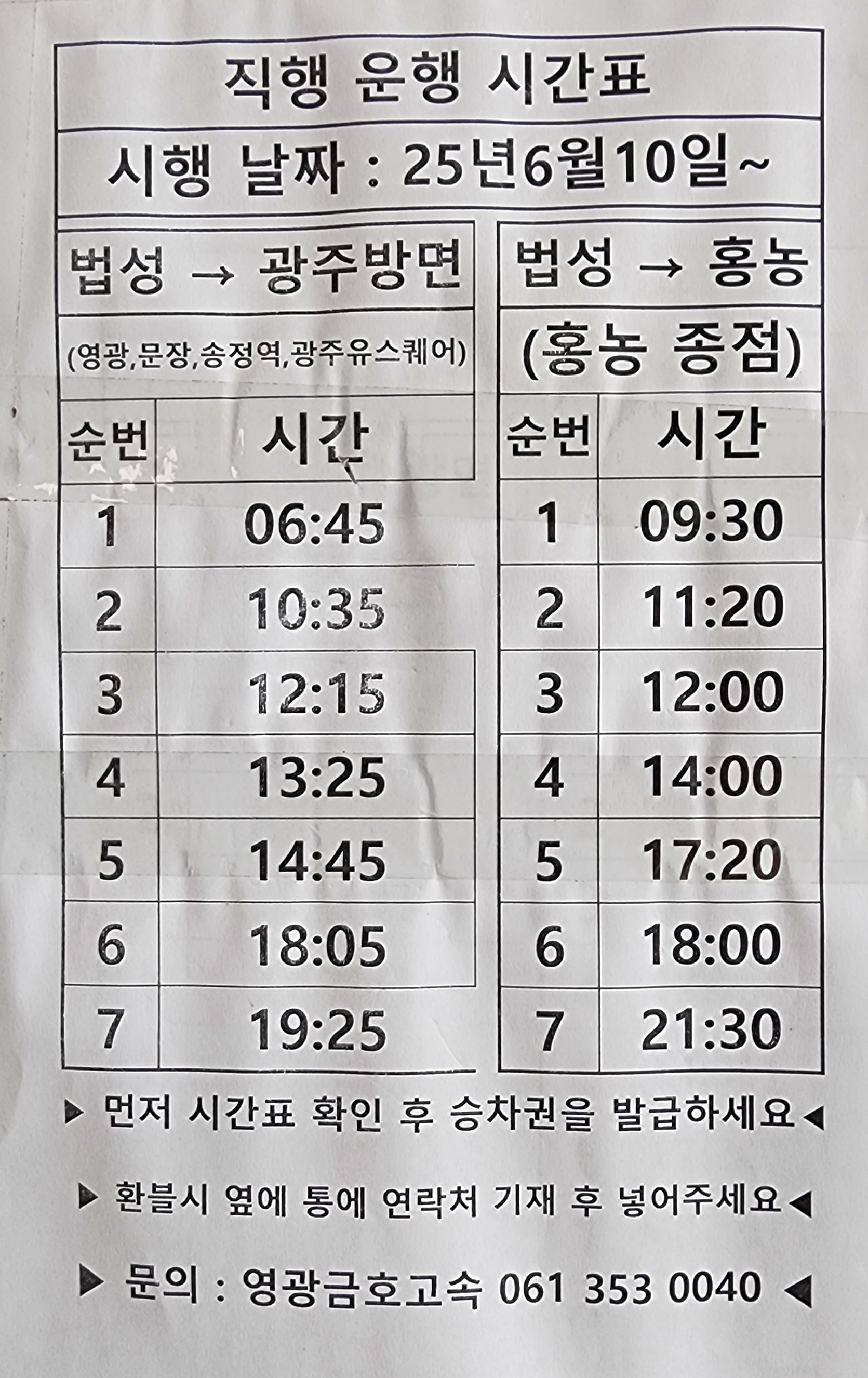 법성 출발 영광, 문장, 송정역, 광주 유스퀘어 방면,