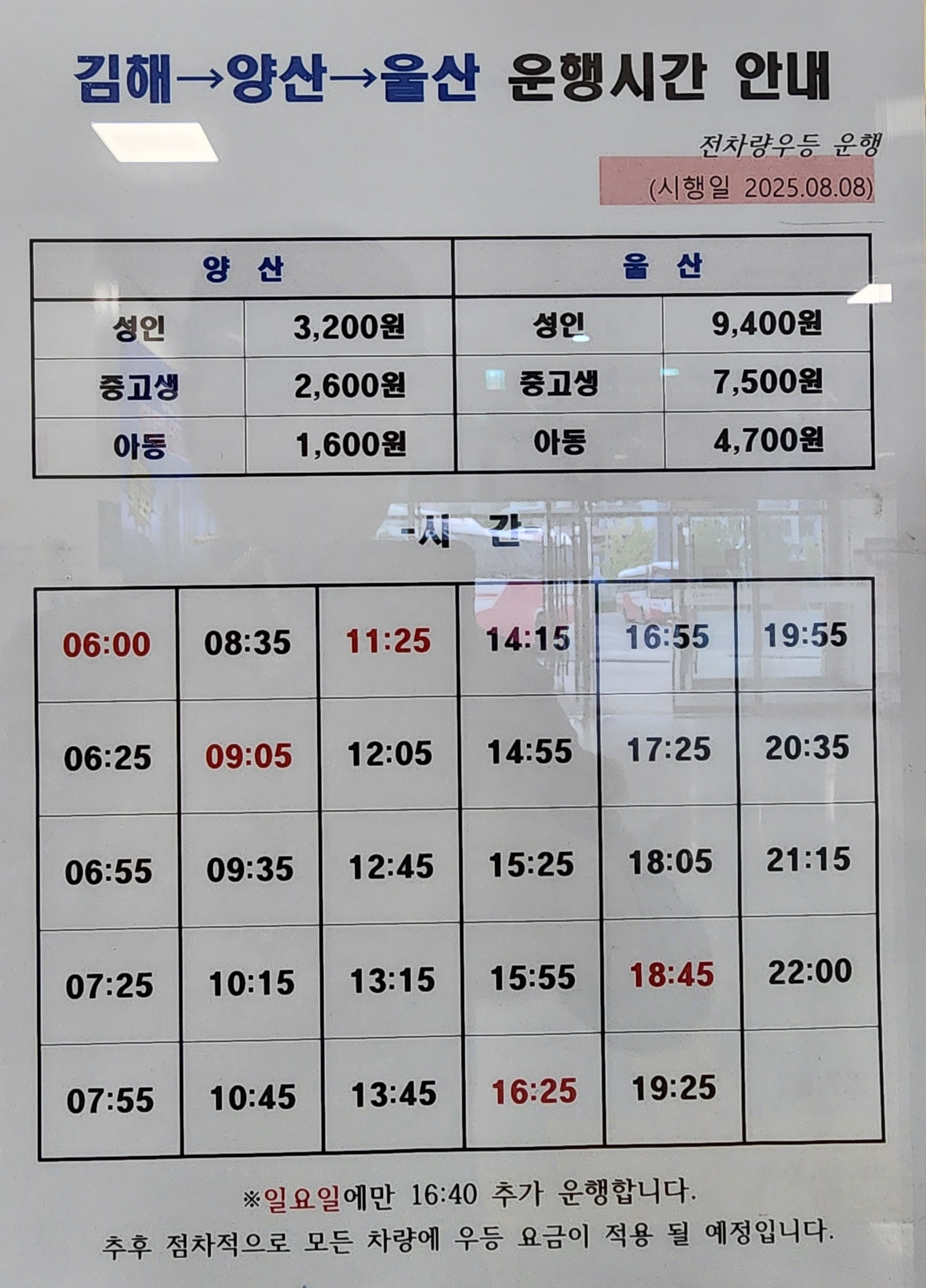 김해 출발 밀양, 부곡, 영산, 창녕, 대구, 양산 , 울산 방면.