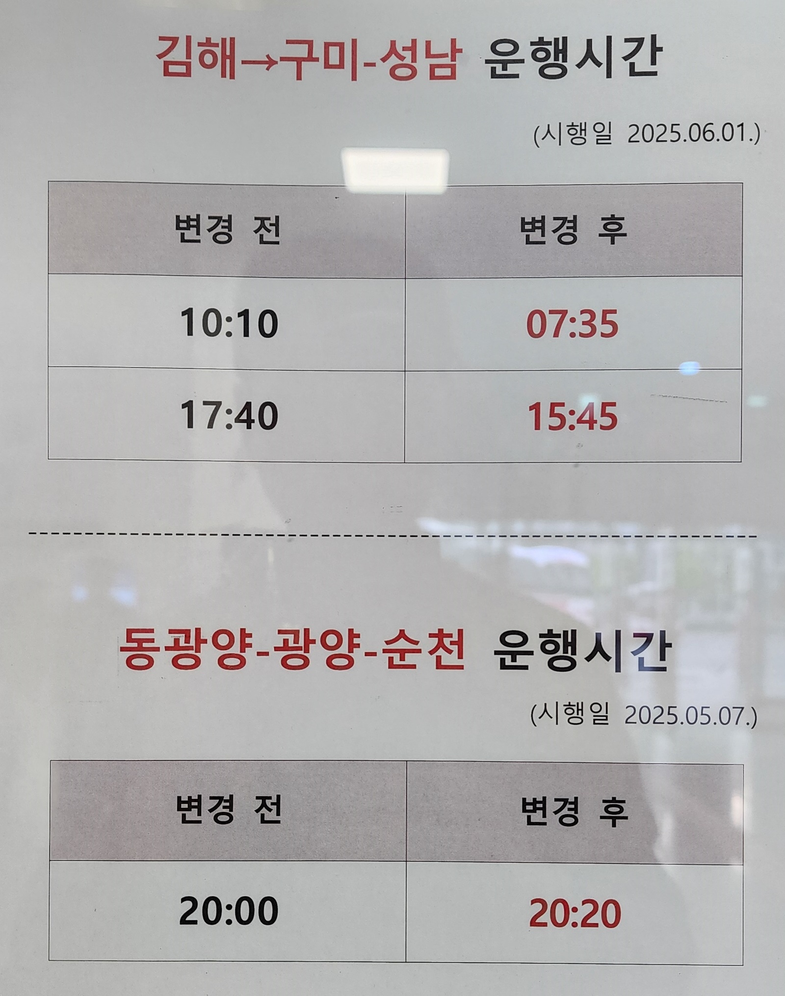 김해 출발 구미, 성남, 동광양, 광양, 순천 방면.