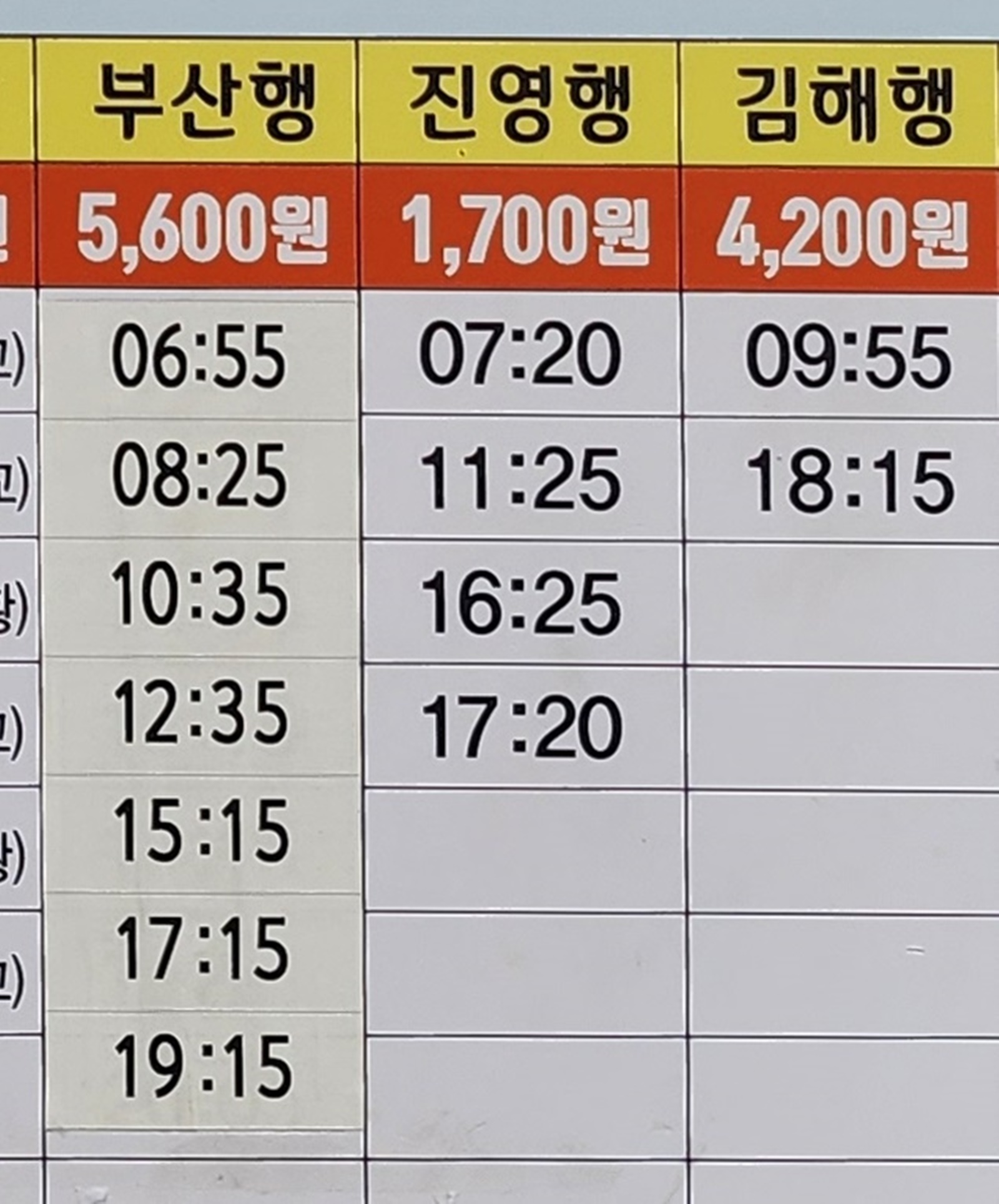 수산 시외버스 터미널 시간표 수산 버스정류장