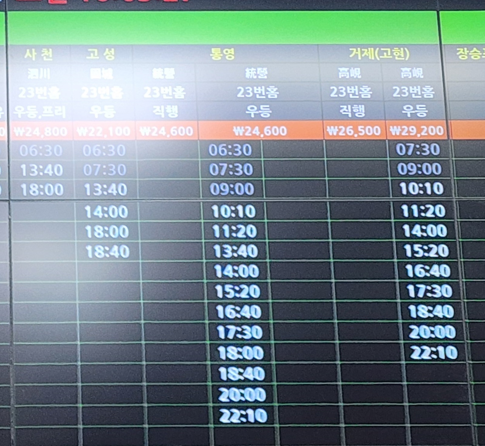 대전 출발 사천, 고성, 통영 ,거제 방면.