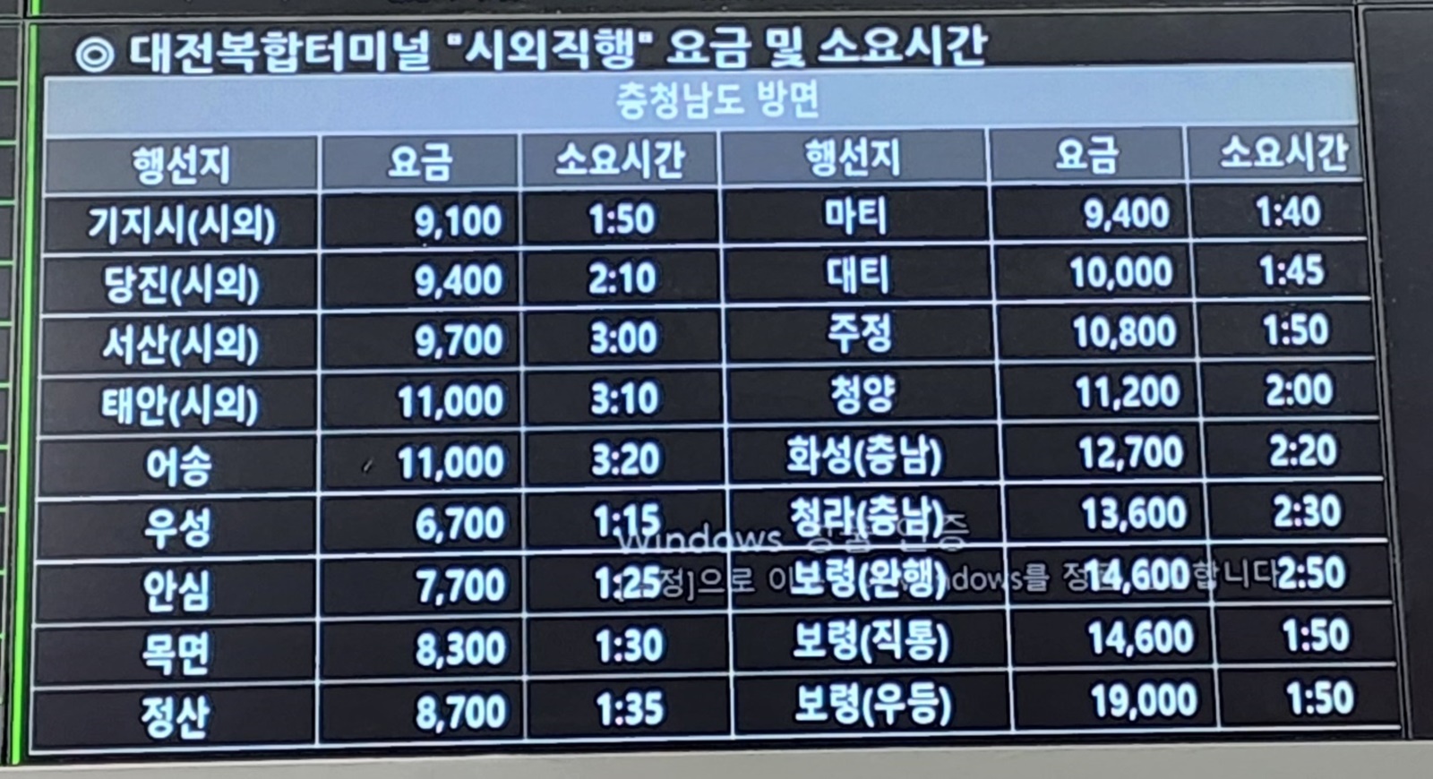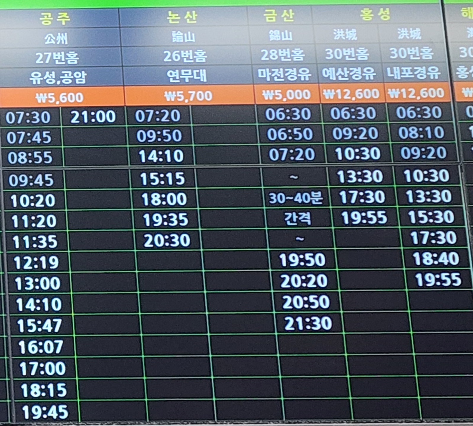 대전 출발 공주, 논산, 금산, 홍성 방면.