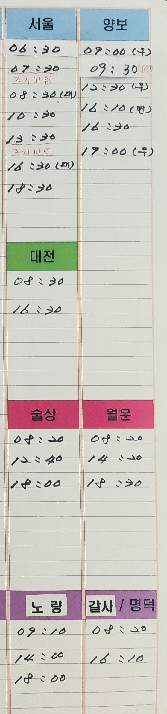 하동 여행의 설렘이 터미널에서의 기다림으로 지치지 않도록, 미리 시간표를 체크하시는 센스! 다들 잊지 마세요.