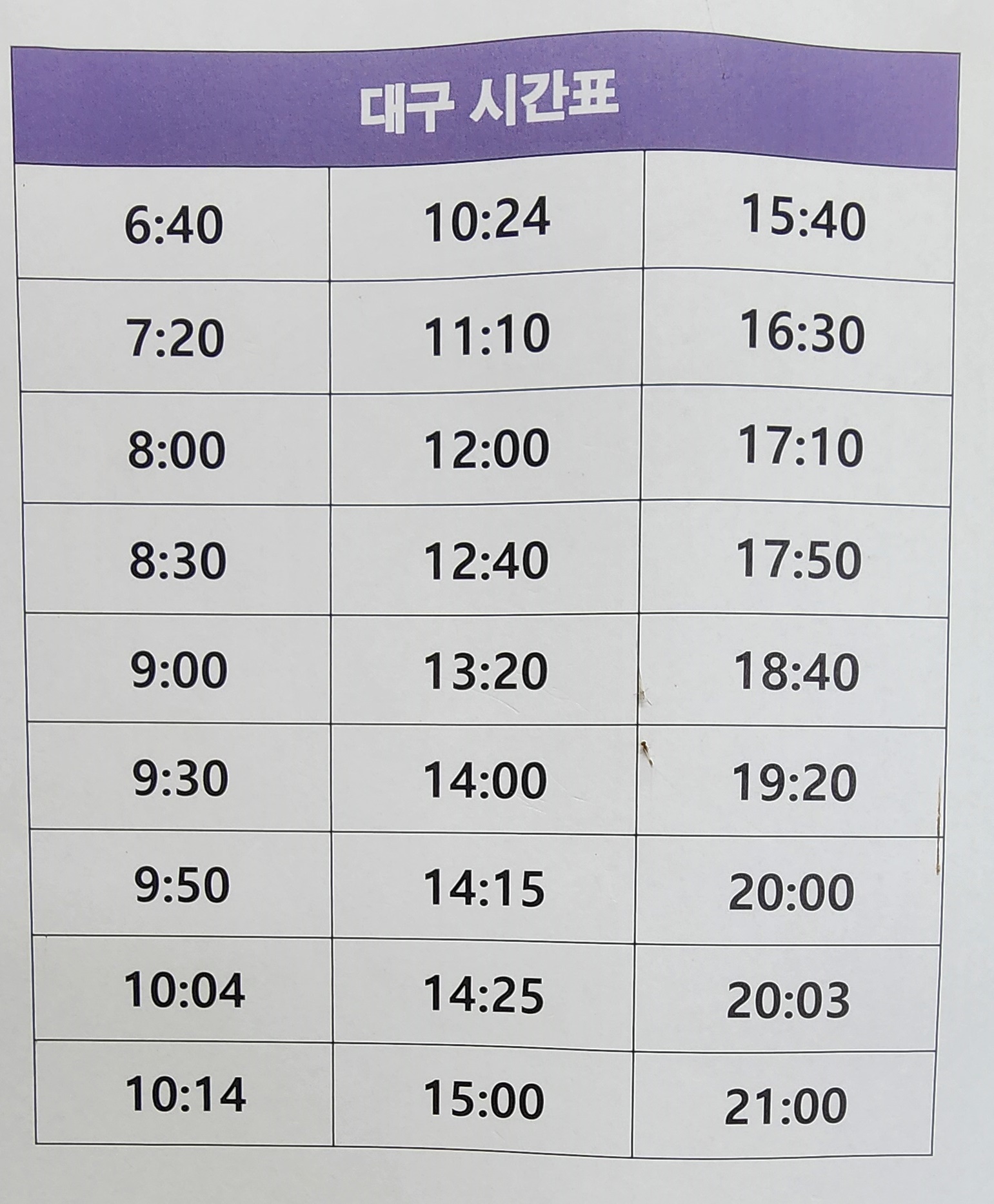 일상이야기/시외버스시간표